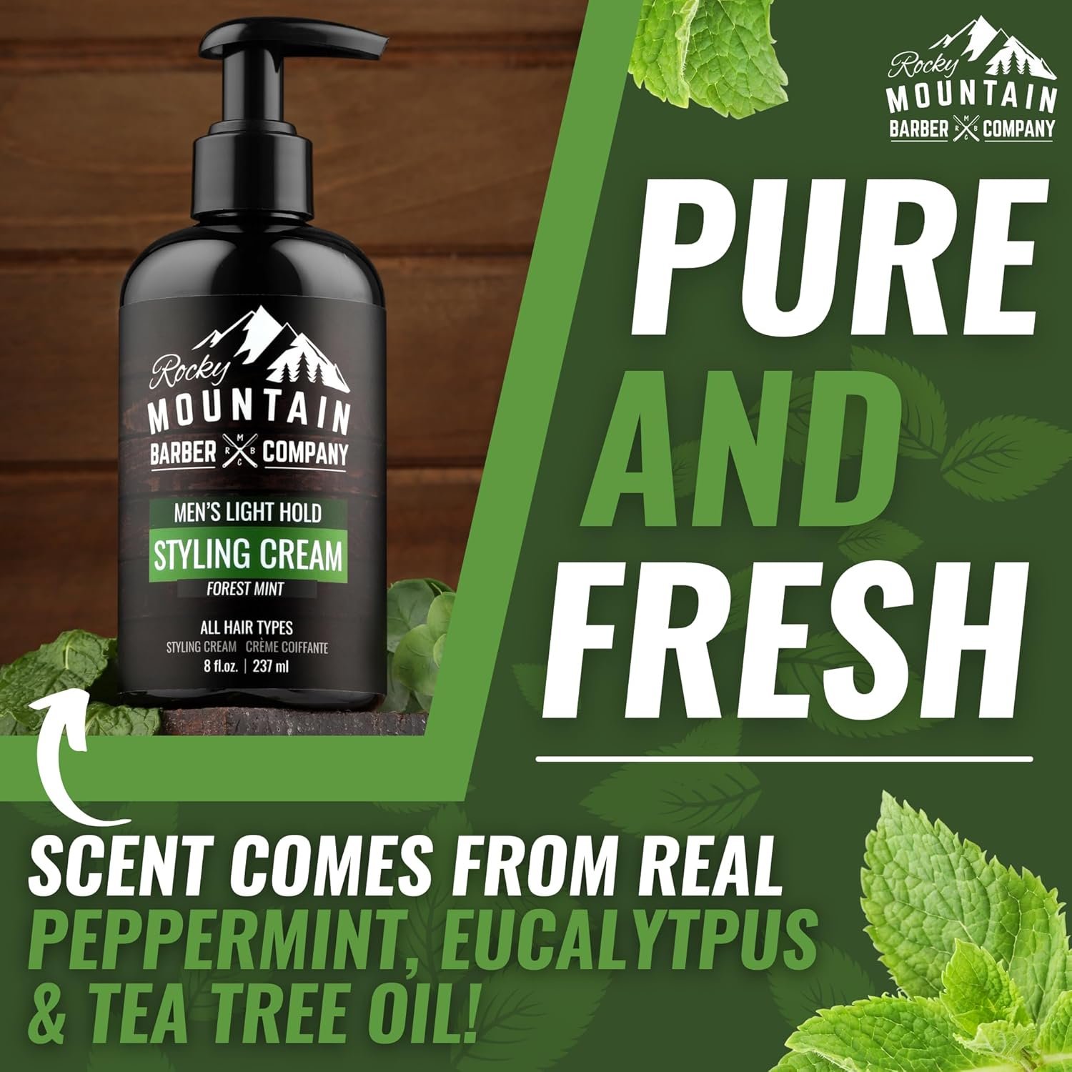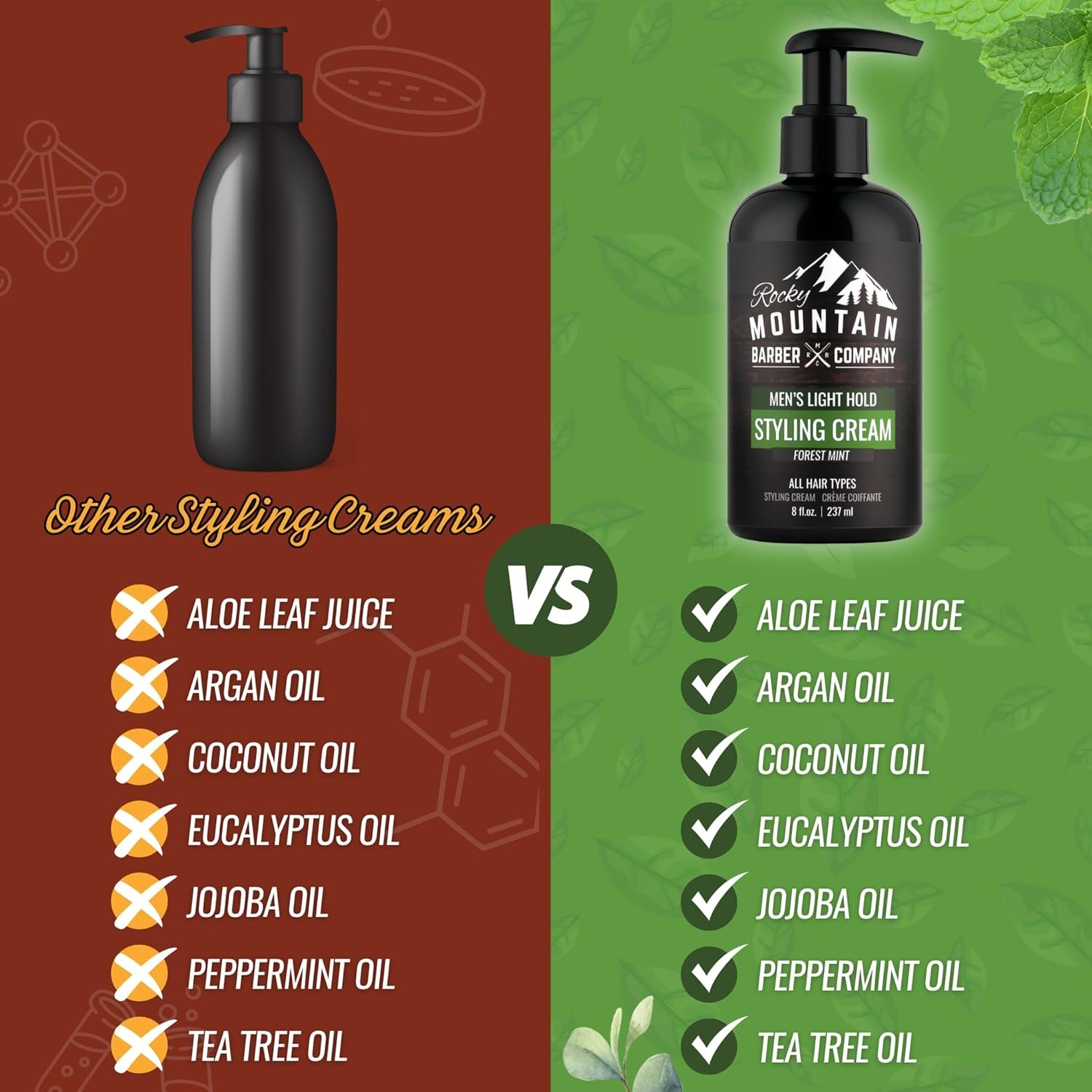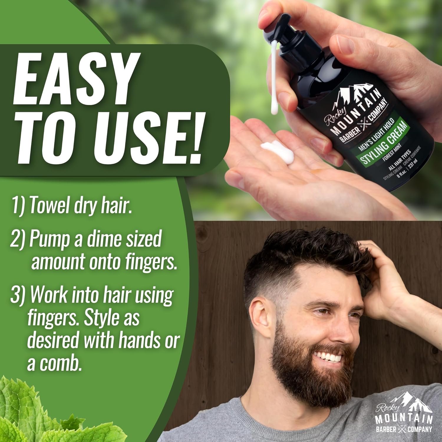 Keeps Your Hair Styled for Months – Our Forest Mint Styling Cream comes in a generous 8 oz bottle, and provides you with months of great looking hair before having to replenish.