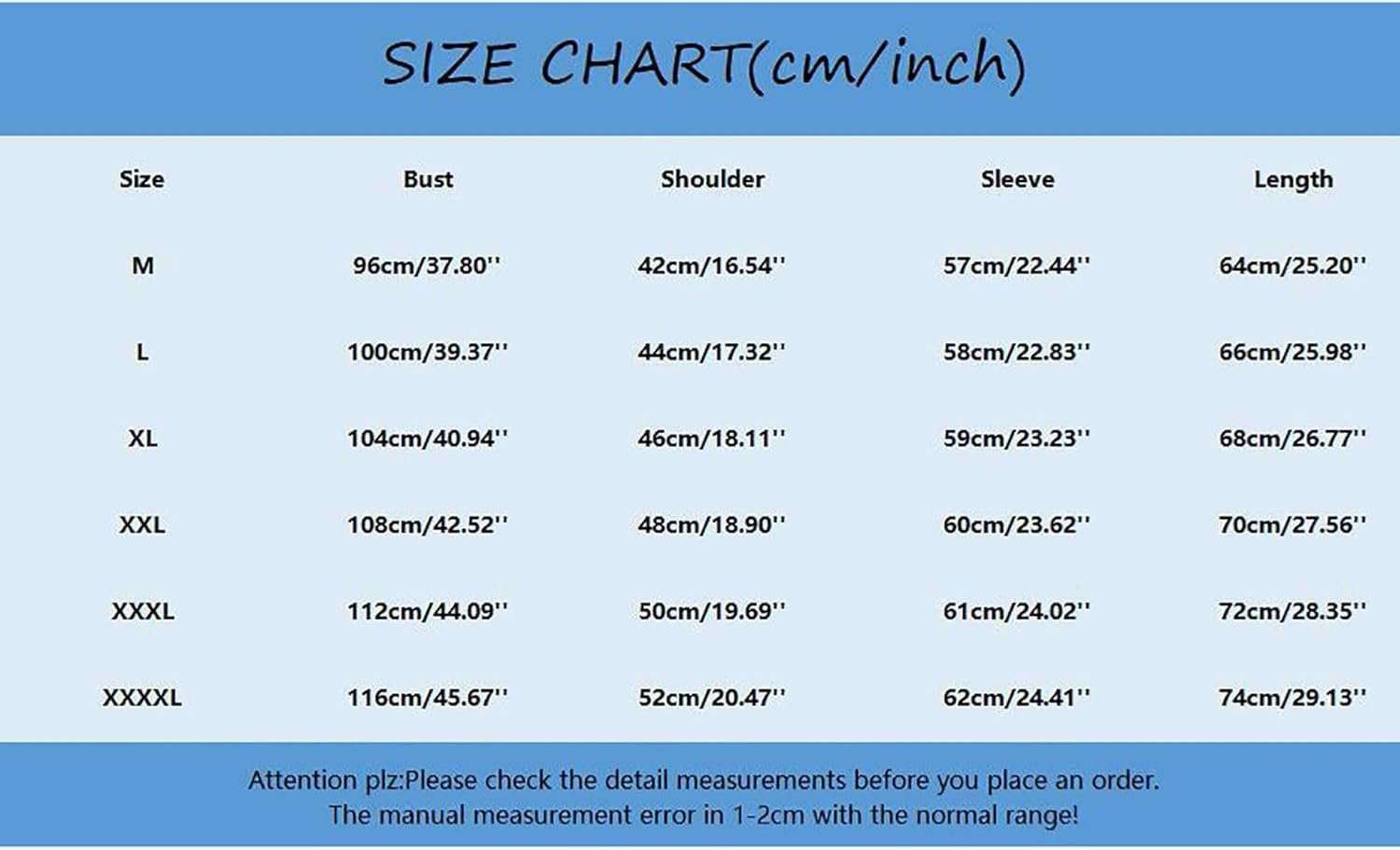 F: I usually wear size “L” and I I’m a little worried about the size. What size should I order?
