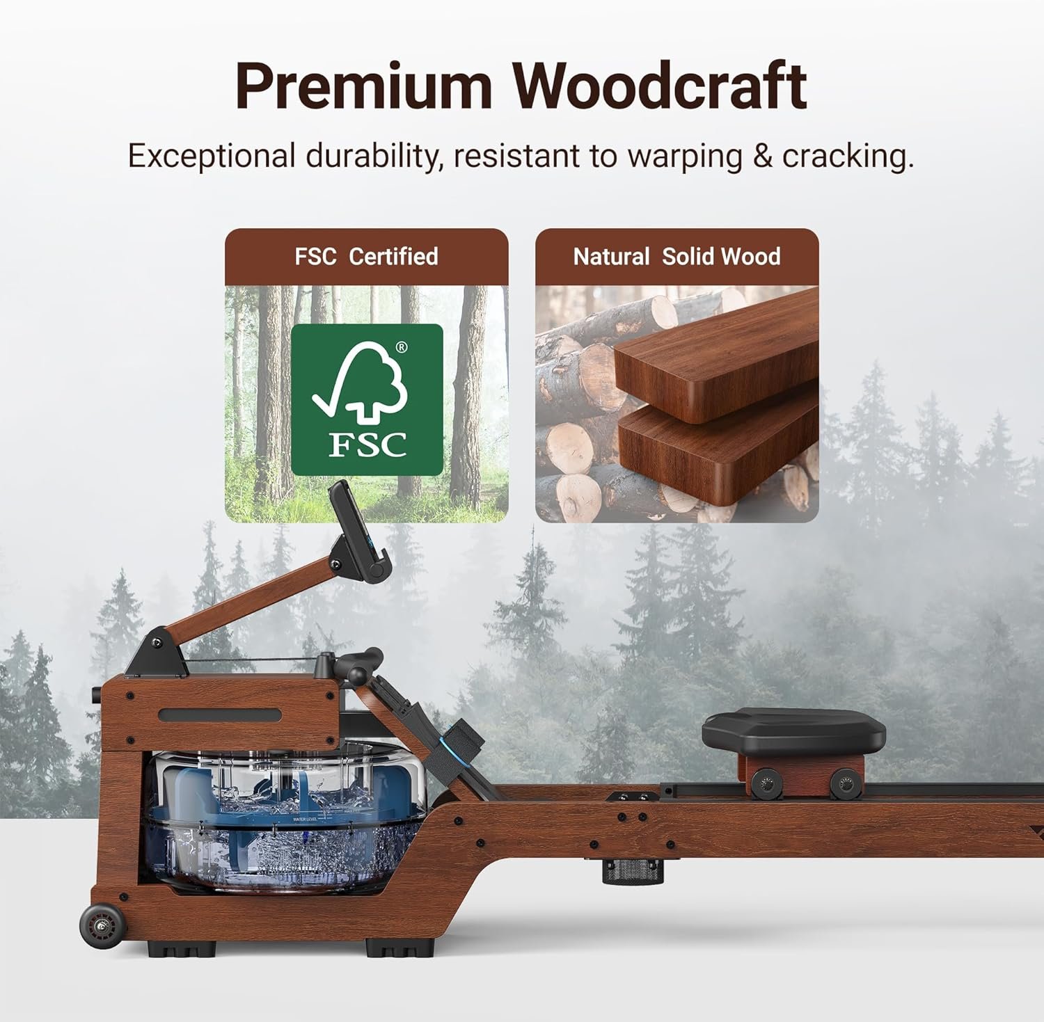 Premium Hardwood: Crafted from high-quality, FSC-certified wood, our water rowing machine boasts a 330-pound weight capacity, ensuring durability and sustainability.