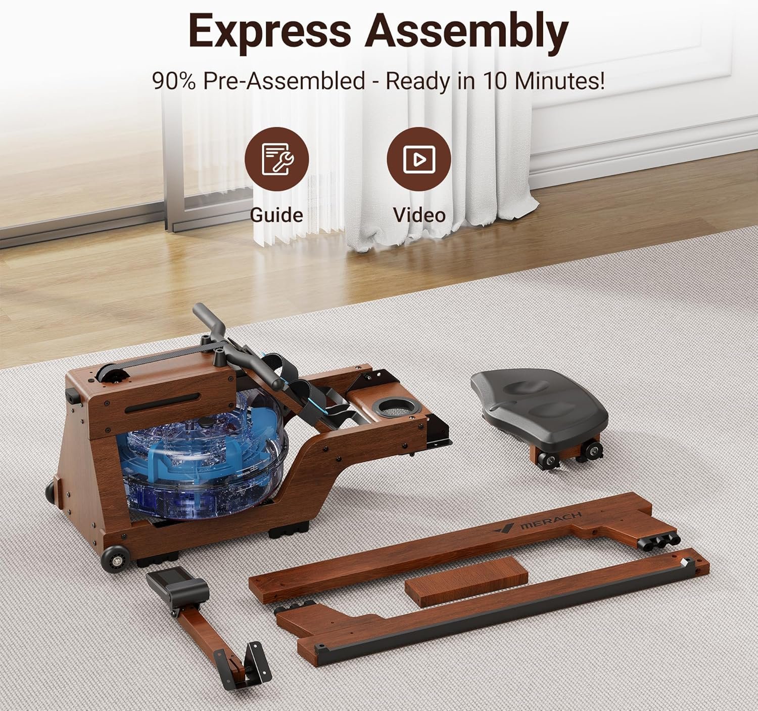 Quick and Easy Assembly: No need to stress over setup – our rowing machine is designed for quick and hassle-free assembly, so you can start your workout in no time. Plus, it comes equipped with water purification tablets, ensuring your water is clean and safe.