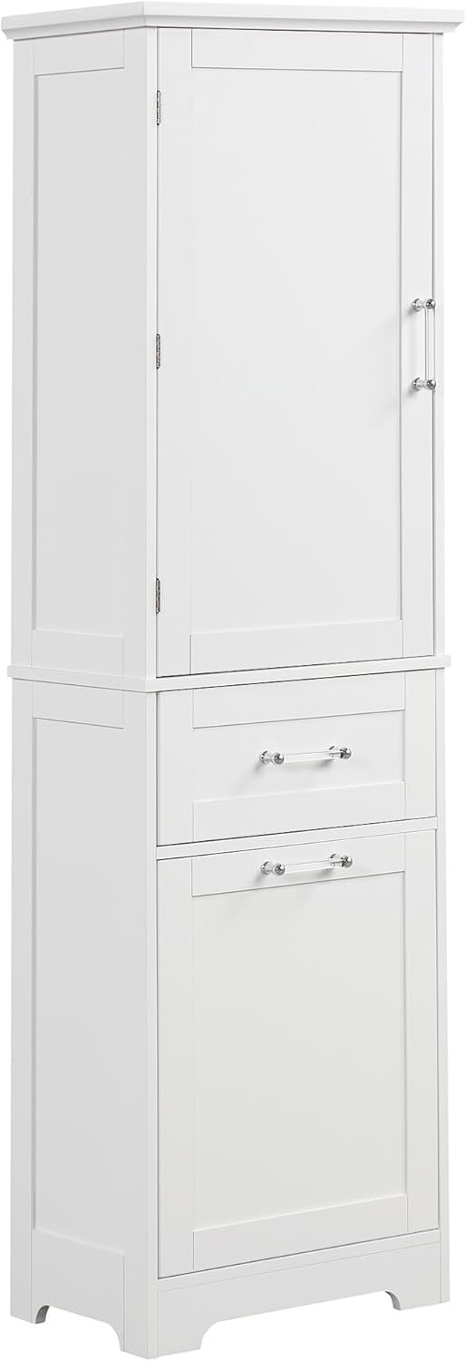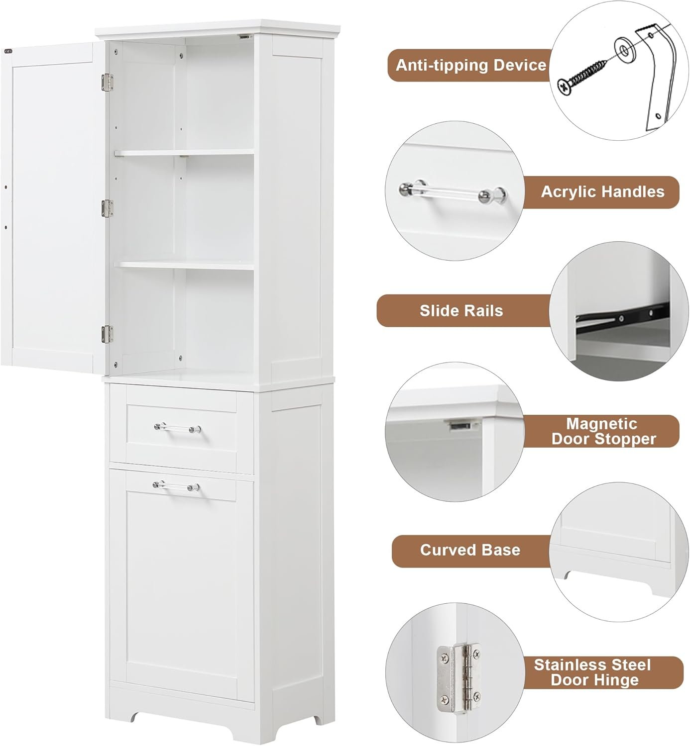 Material – The main frame and the doors of this cabinet are made of high-quality MDF boards with painted finish. Importantly, the surface, feeling smooth, is water-proof and easy to clean. The door handle, hinge and drawer slide is made of metal, which is sturdy and durable.