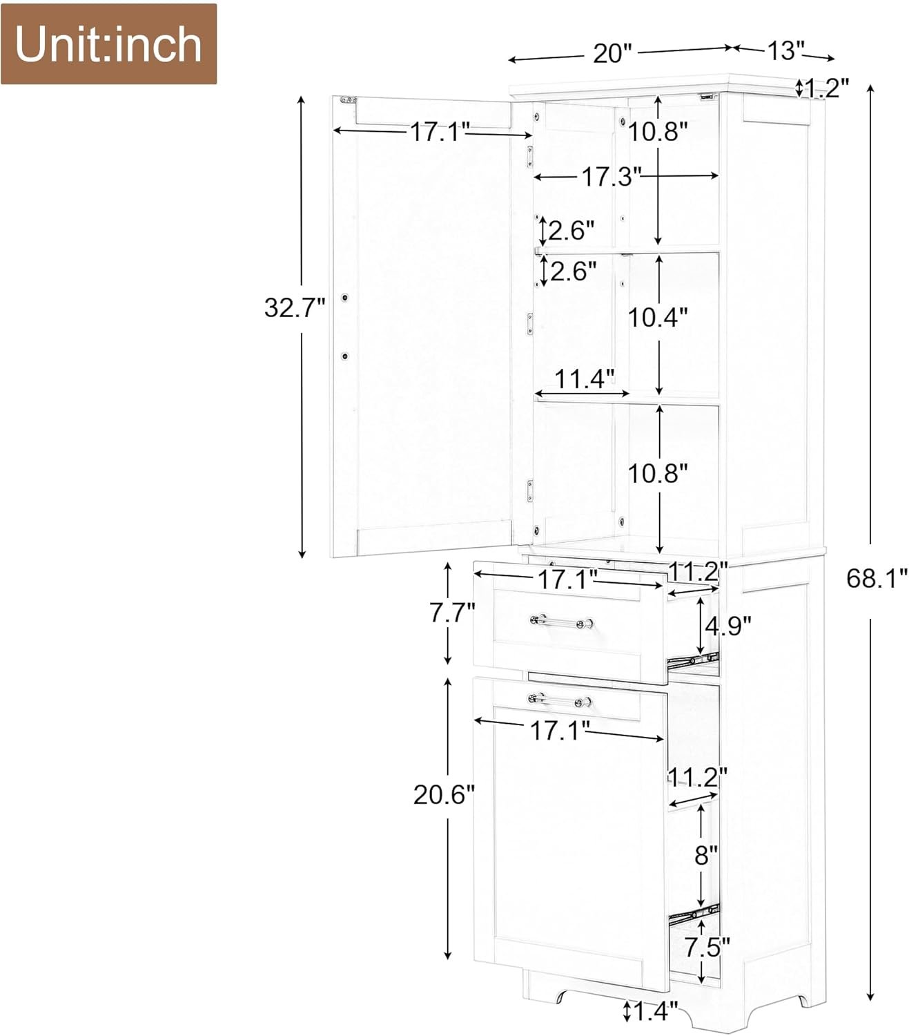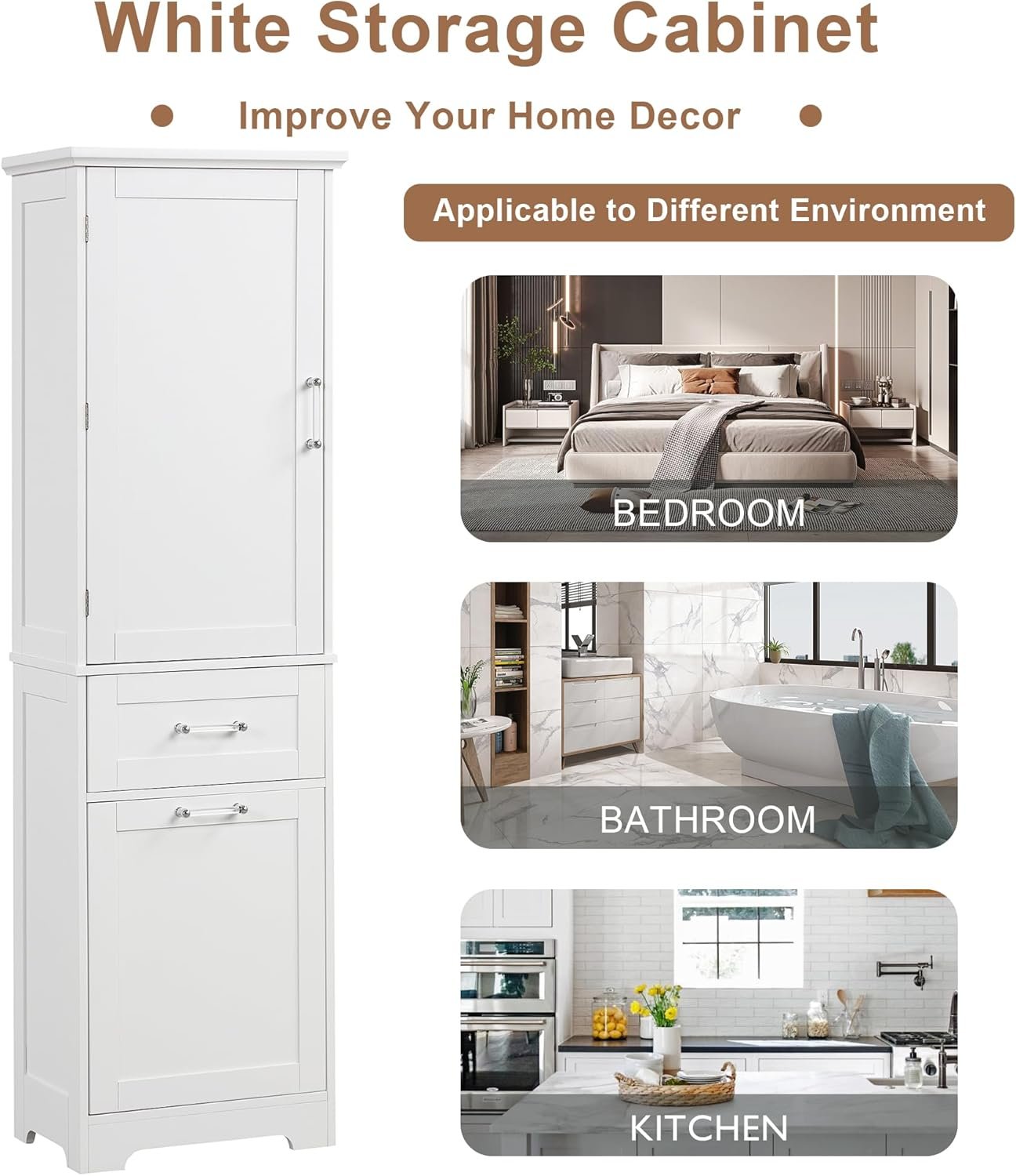 Wide Application – This tall and wide storage cabinet is widely applicable. You can put it in the office as a bookcase, bathroom as a storage cabinet, or kitchen as a pantry etc..