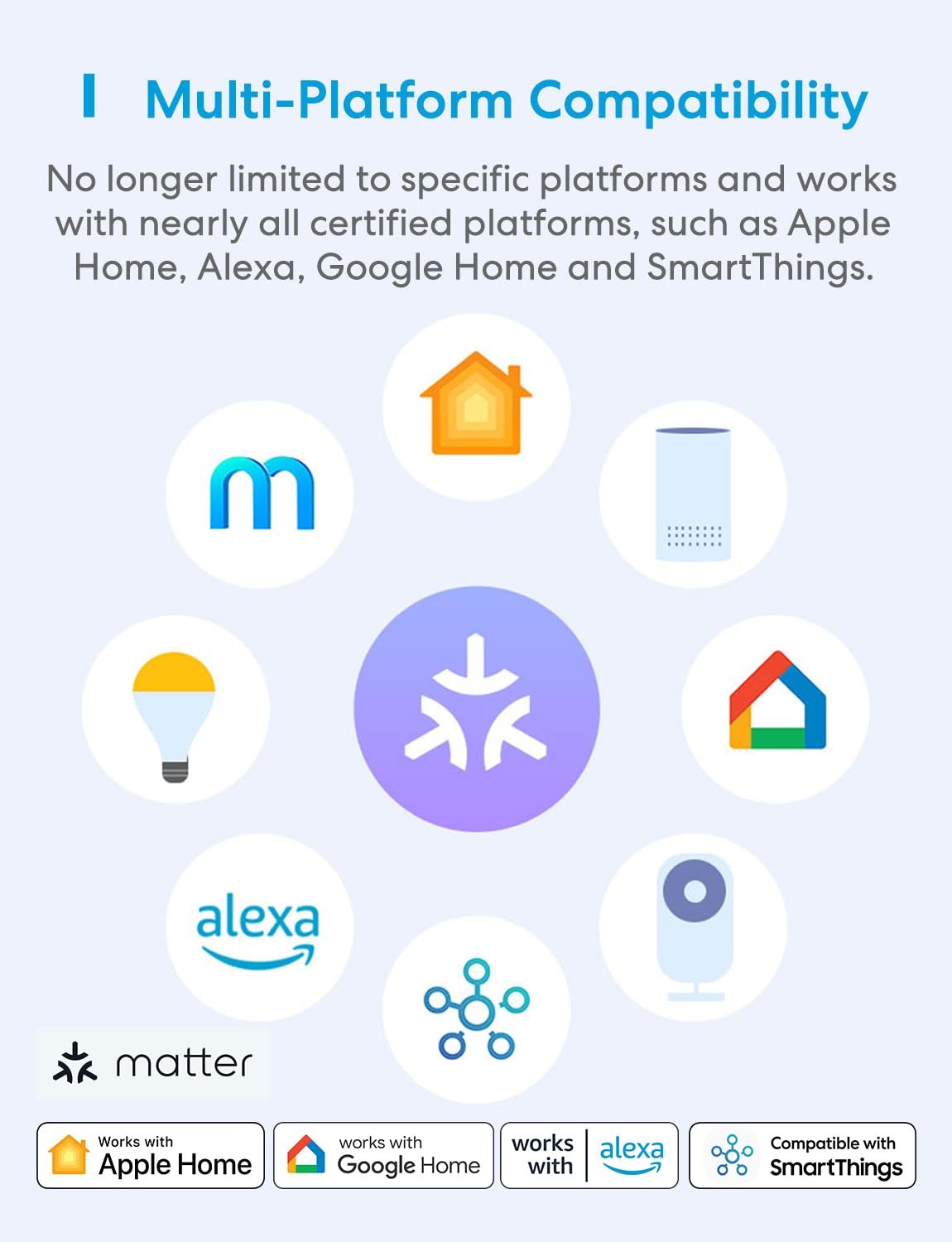 ✅【Matter Multi-platform Compatibility】Discover the power of Matter! Never limited to any platform anymore. Matter plug works seamlessly across all certified smart home platforms such as Apple Home, Alexa, Google Home, and SmartThings, enabling interoperability of all platforms and all Matter products, to easily build your Matter smart home.