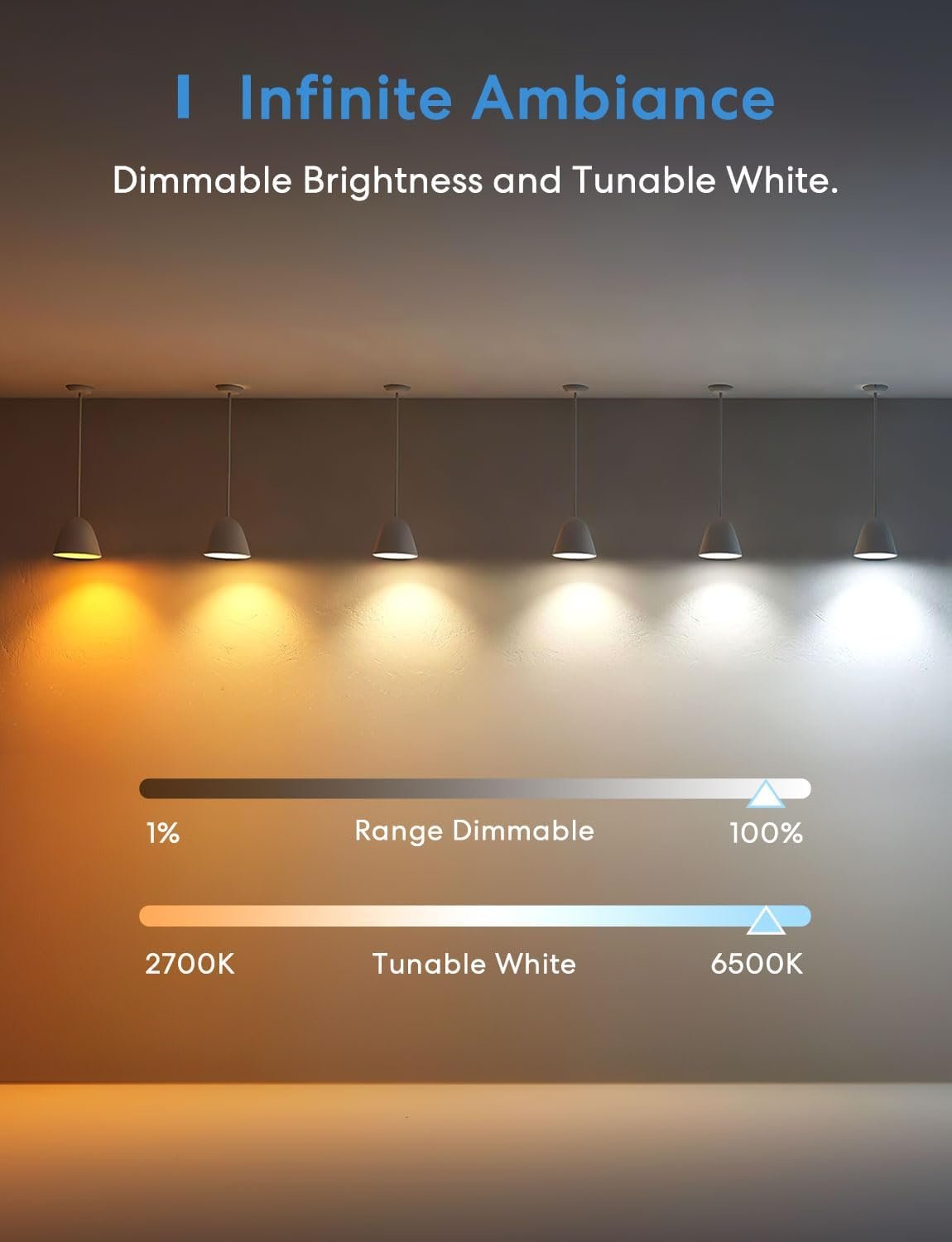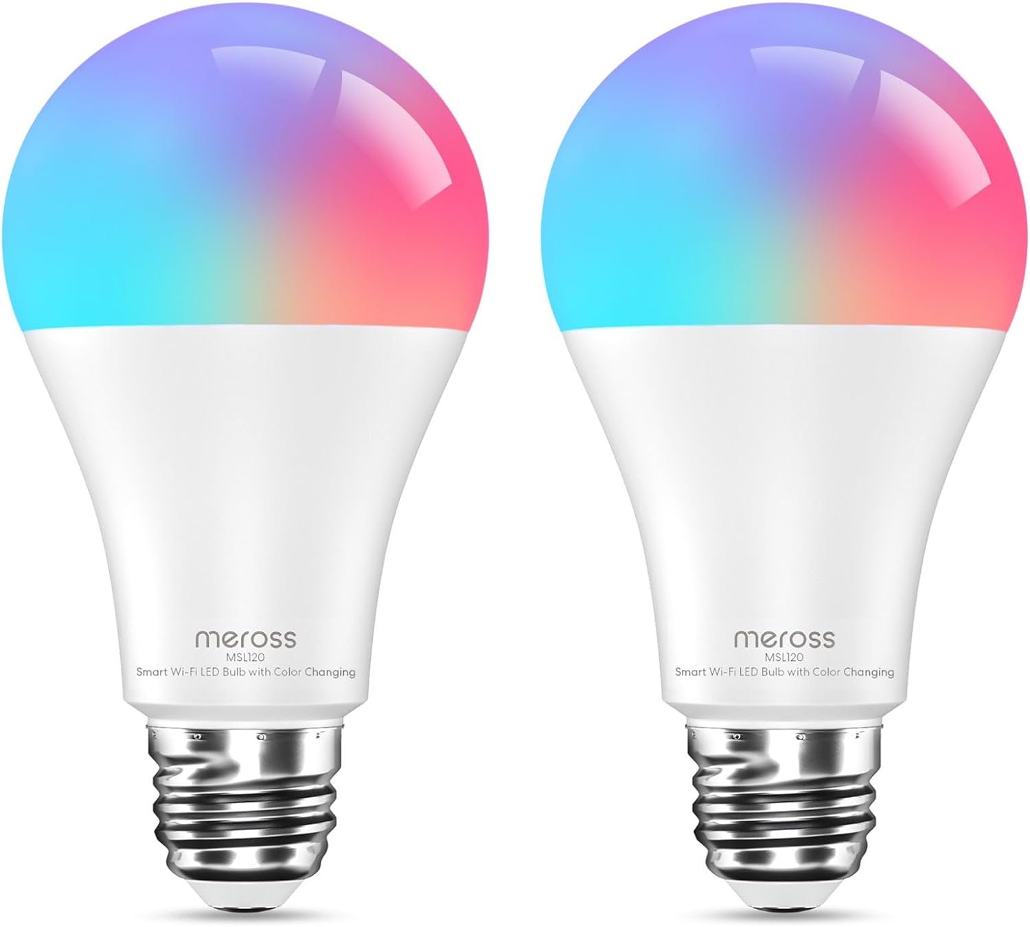 meross Wi-Fi Smart Light Bulb, Color Changing Led Bulbs Compatible with Alexa and Google Home, 2700K-6500K Tunable White, 810 Lumens 60W Equivalent, A19, E26, 2 Pack