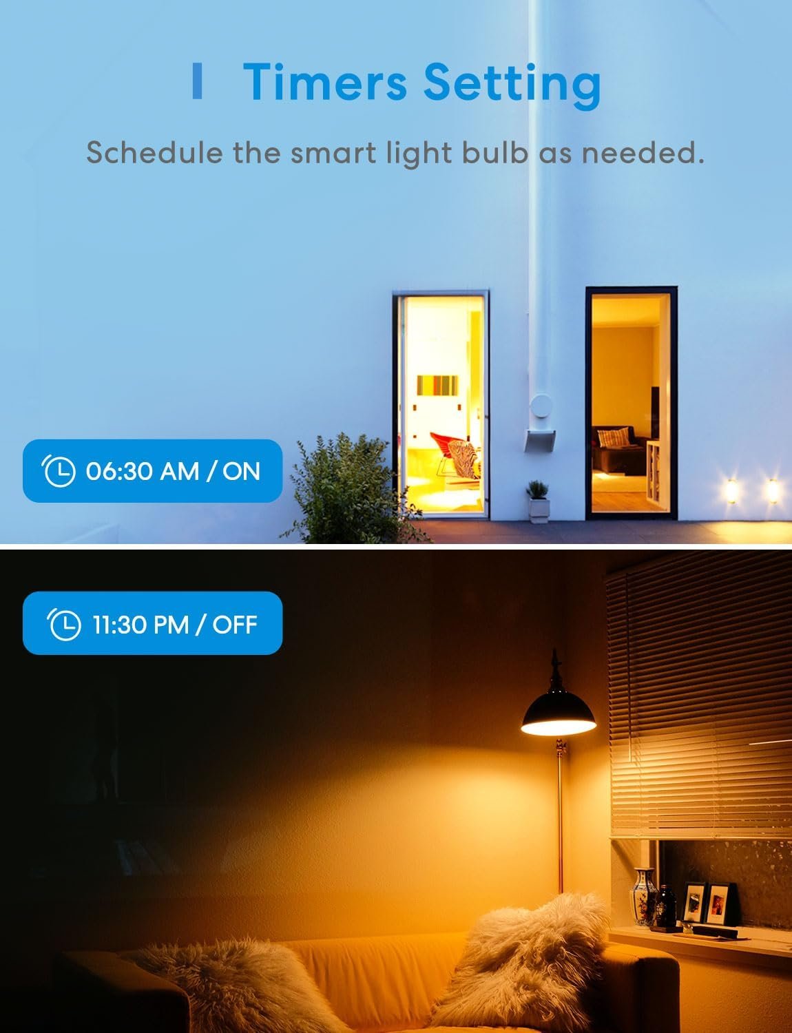 Set Schedule & Timer Function:Time to enjoy a smart home and customize a schedule or scene of all your lights. By presetting timers or routines on the Meross app, you can set sunrise, sunset, movie, and away mode for each room
