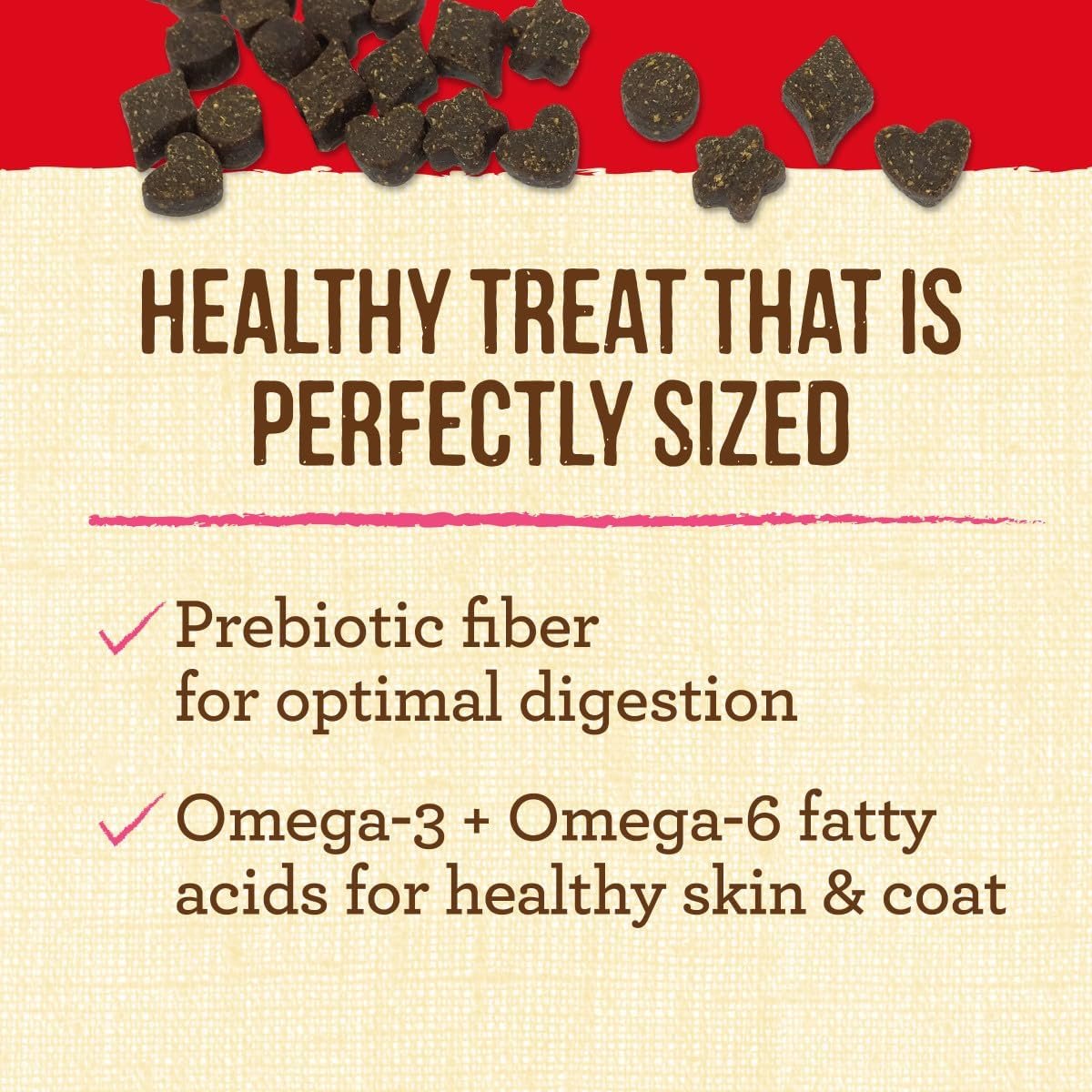 Real deboned beef is always the first ingredient in this pouch of small dog training treats that come in a variety of fun shapes for toy and small breeds