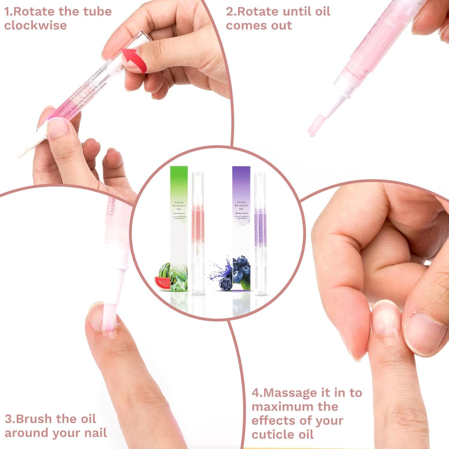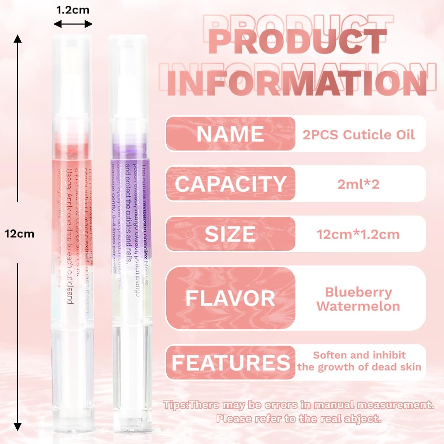 Meschett 2PCS Cuticle Oil Pens for Nail Care,Cuticle Revitalizer Oil Pen with Soft Brush,Cuticle Oil to Prevent Nail Cracking and Dry (Blueberry & Watermelon Flavor)