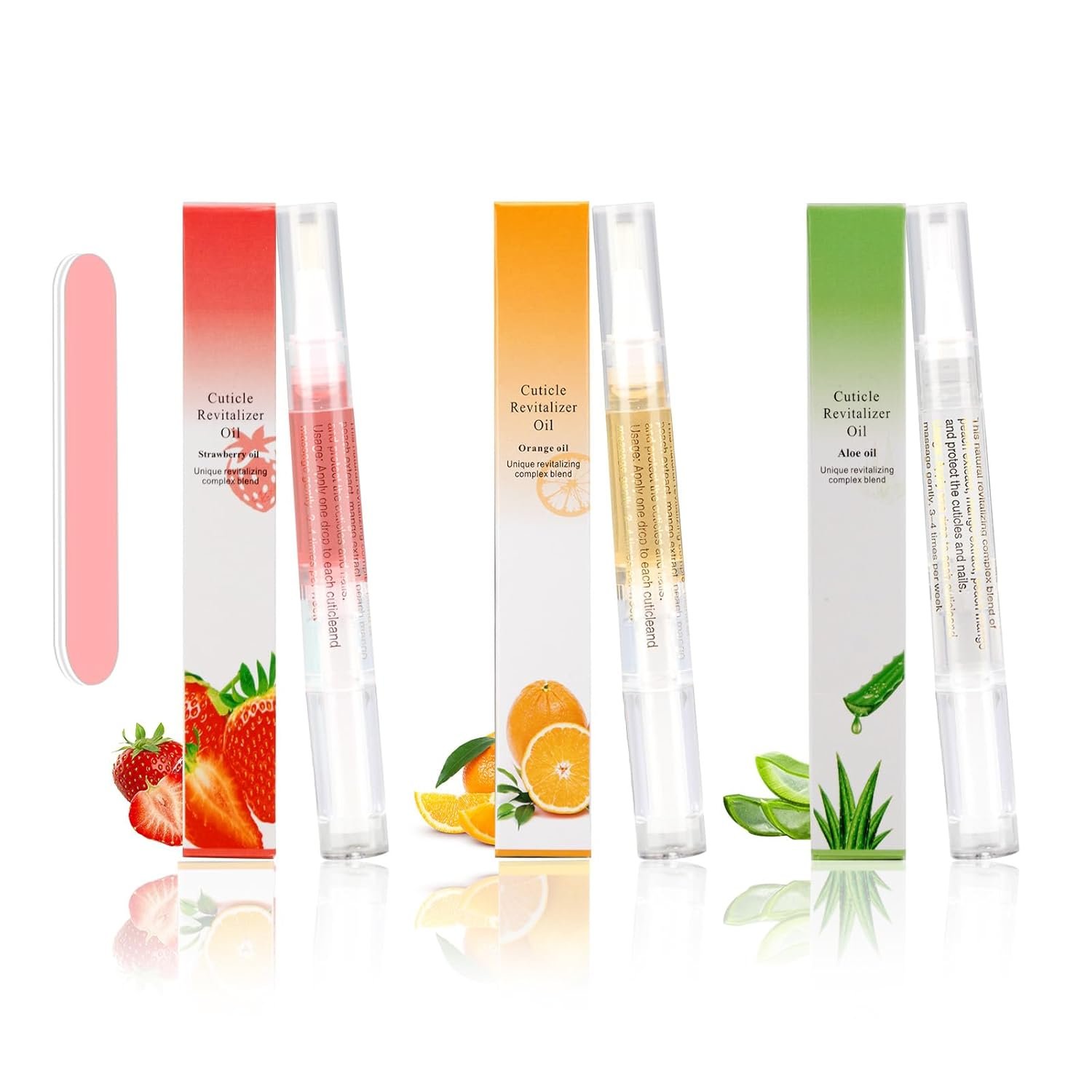 【Nails Oil Set】 – The package contains 3 cuticle oil pens and 1 nail file. Use the nail file to shape your nails.This unique oil strengthens nails and protects hands from barbs, leaving them smooth, creamy and shiny.