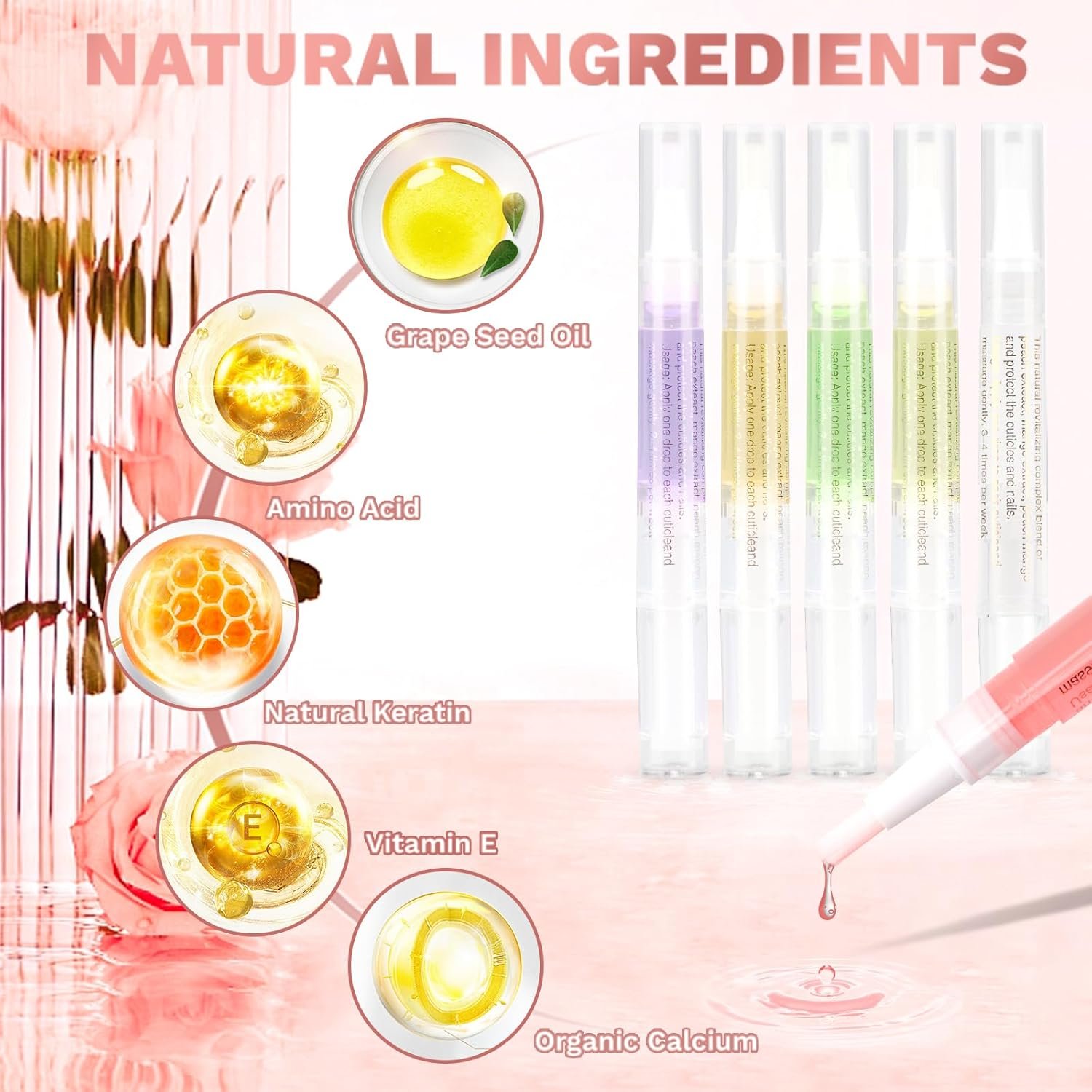 High Quality: The cuticle oil are made for natural ingredients extracted from plants,is rich in fruity ingredients,Fragrant,Non-toxic,Moisturizes and nourishes cuticles while encouraging healthy nail growth,De-aging skin for the impatient.Sharmless to your nails, Give nails enough nourishment.