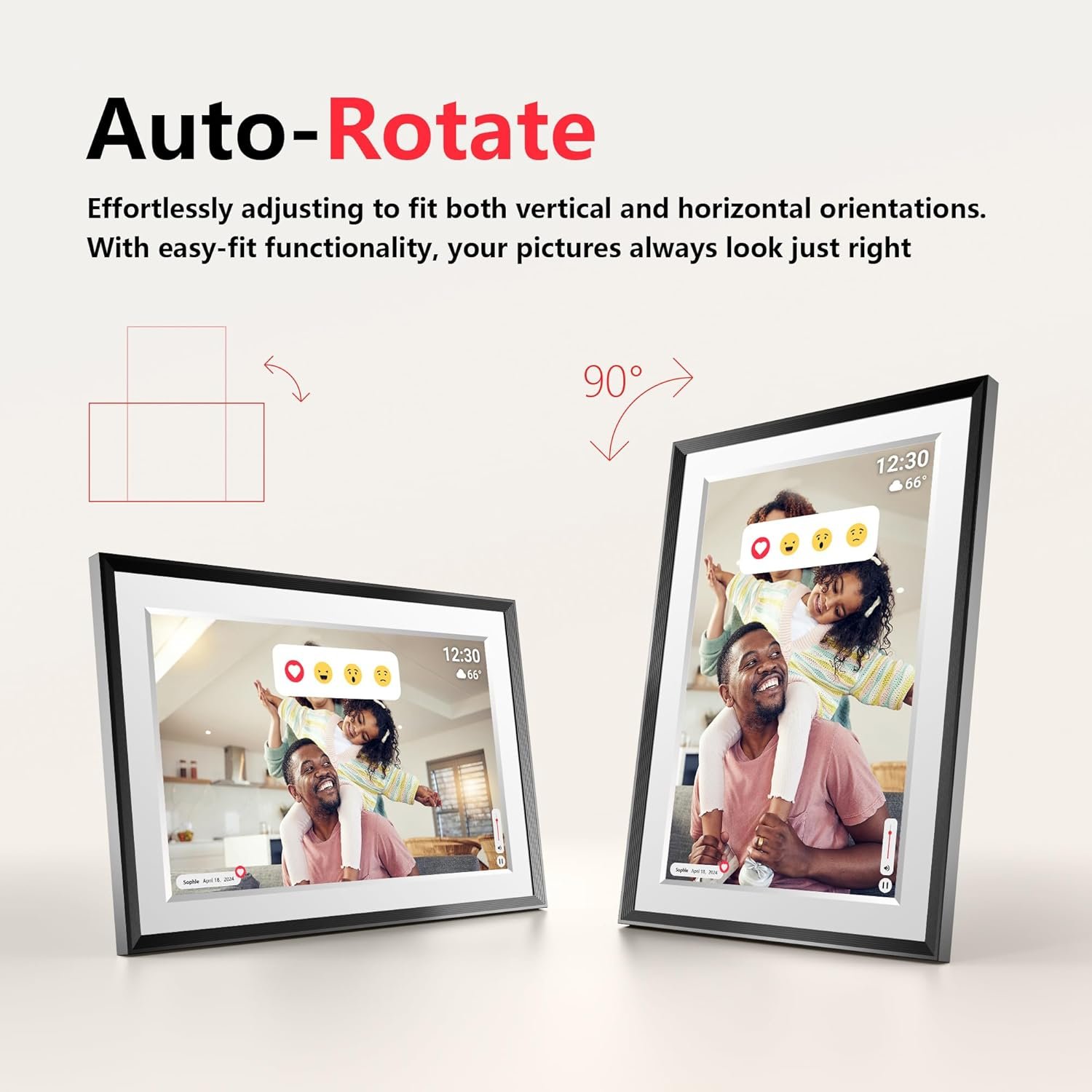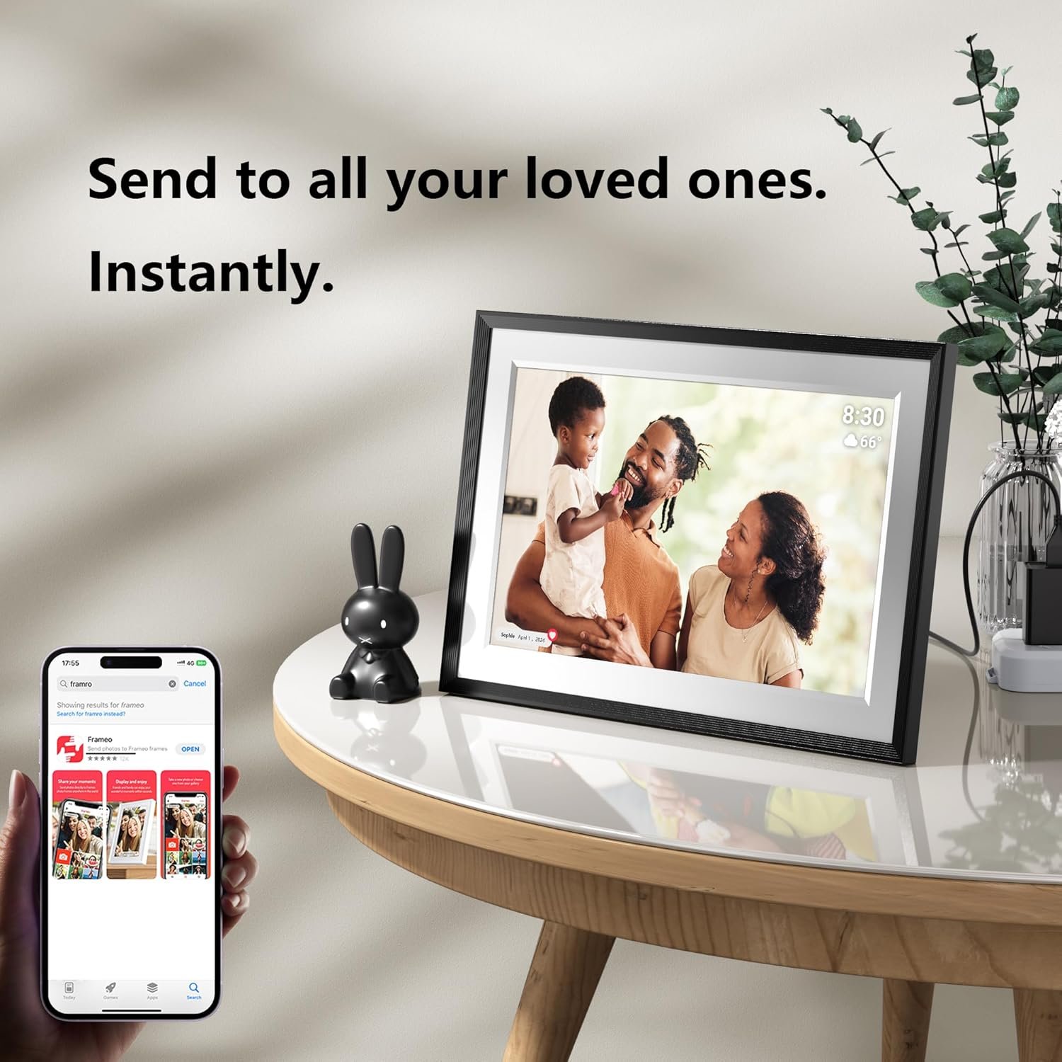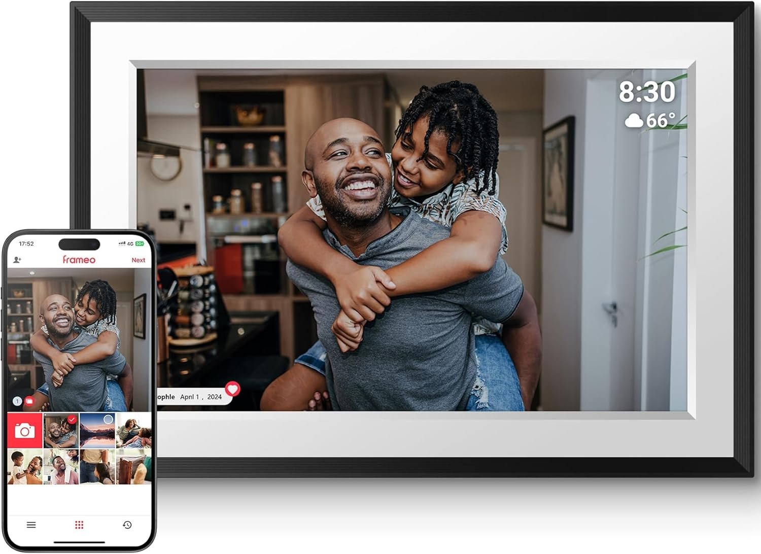 EASY PHOTO SHARING — Share your photos instantly with the Frameo app, compatible with both iOS and Android devices. Send your favorite moments directly to the Frameo wifi digital photo frame from anywhere, keeping your display updated with the latest memories.