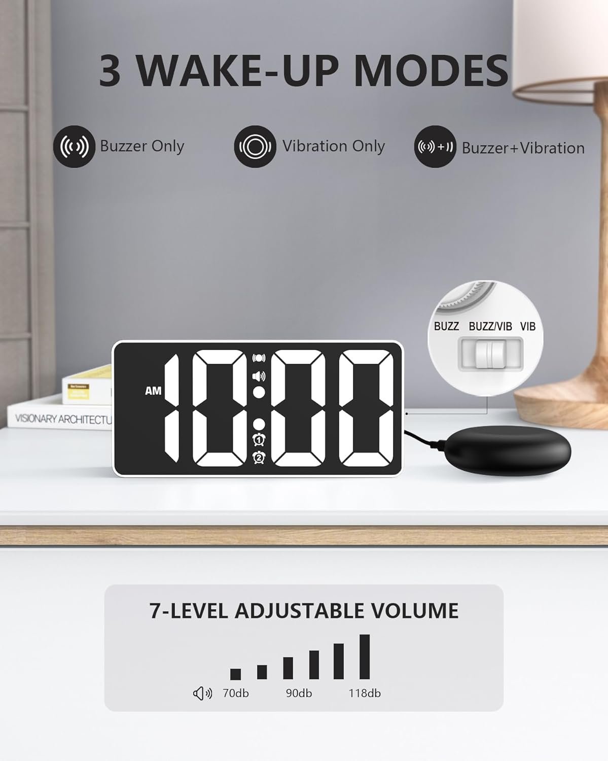 ⏰ Wake Up Refreshed ⏰ Loud Alarm Clock for Heavy Sleepers, equipped with 7 levels of alarm volume (70dB to 118dB). Never worry about oversleeping again!