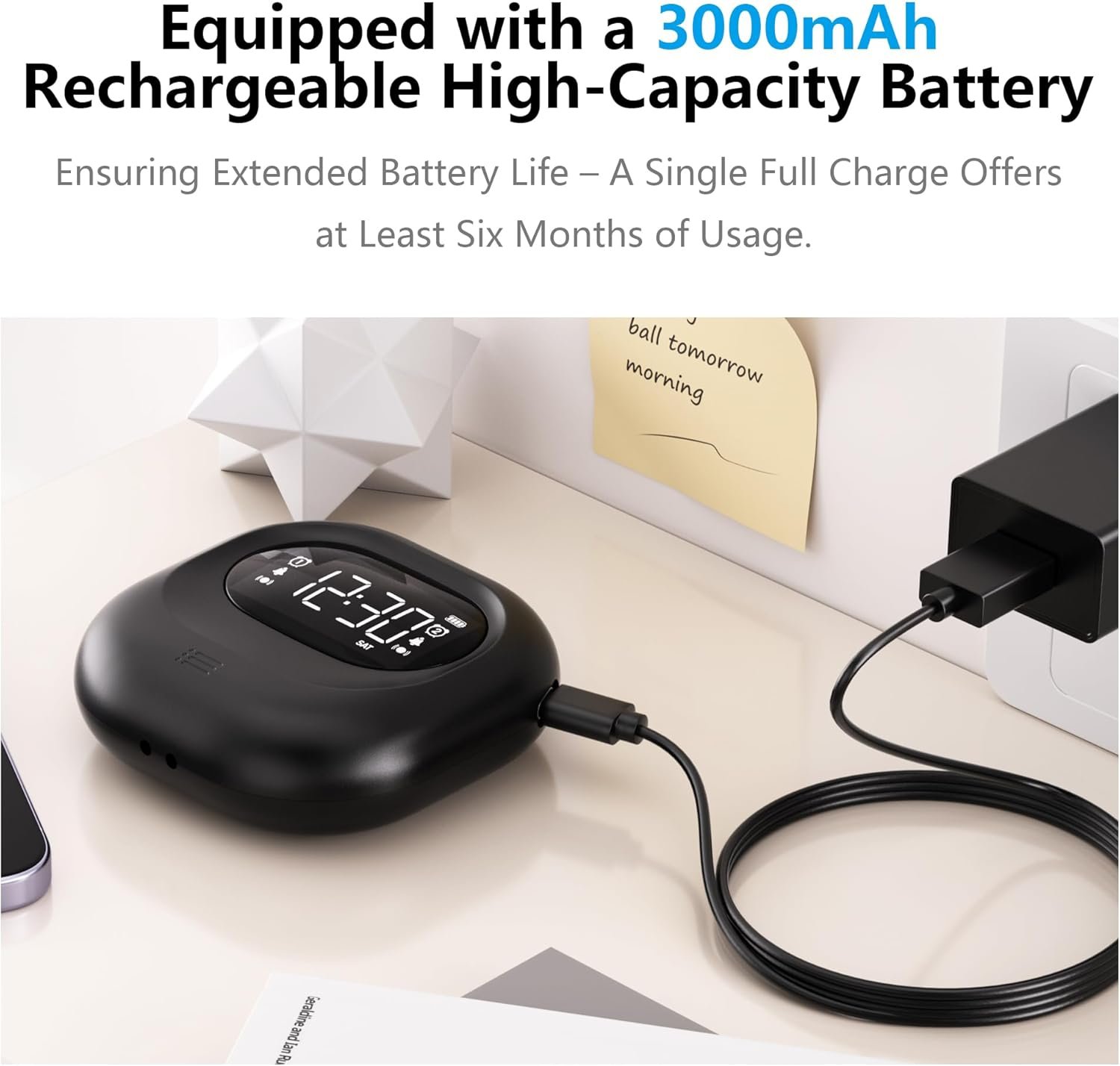 ๐—Ÿ๐—ฎ๐—ฟ๐—ด๐—ฒ ๐—–๐—ฎ๐—ฝ๐—ฎ๐—ฐ๐—ถ๐˜๐˜† ๐—ฅ๐—ฒ๐—ฐ๐—ต๐—ฎ๐—ฟ๐—ด๐—ฒ๐—ฎ๐—ฏ๐—น๐—ฒ ๐—•๐—ฎ๐˜๐˜๐—ฒ๐—ฟ๐˜†: Powered by a high-capacity rechargeable battery, our Vibrating Alarm Clock provides up to six months of uninterrupted use on a single charge. Stay punctual and stress-free with this eco-friendly solution, eliminating the need for frequent recharging.