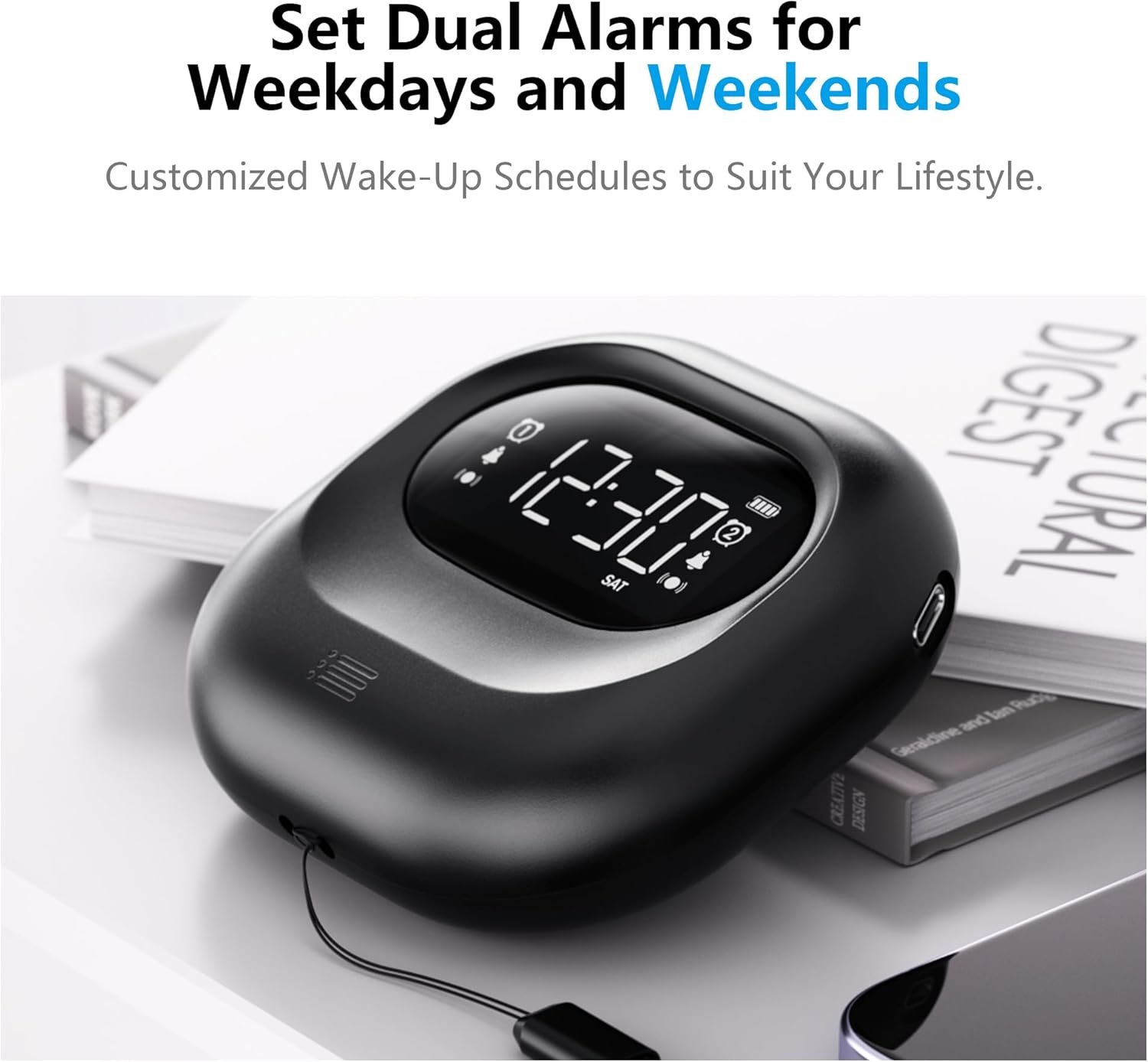 Mesqool Vibrating Alarm Clock for Heavy Sleepers, Battery Operated Rechargeable Bed Shaker Under Pillow, Weekday/Weekend Dual Alarms, Wireless, Cordless, Travel Digital Clock for Hearing-impaired