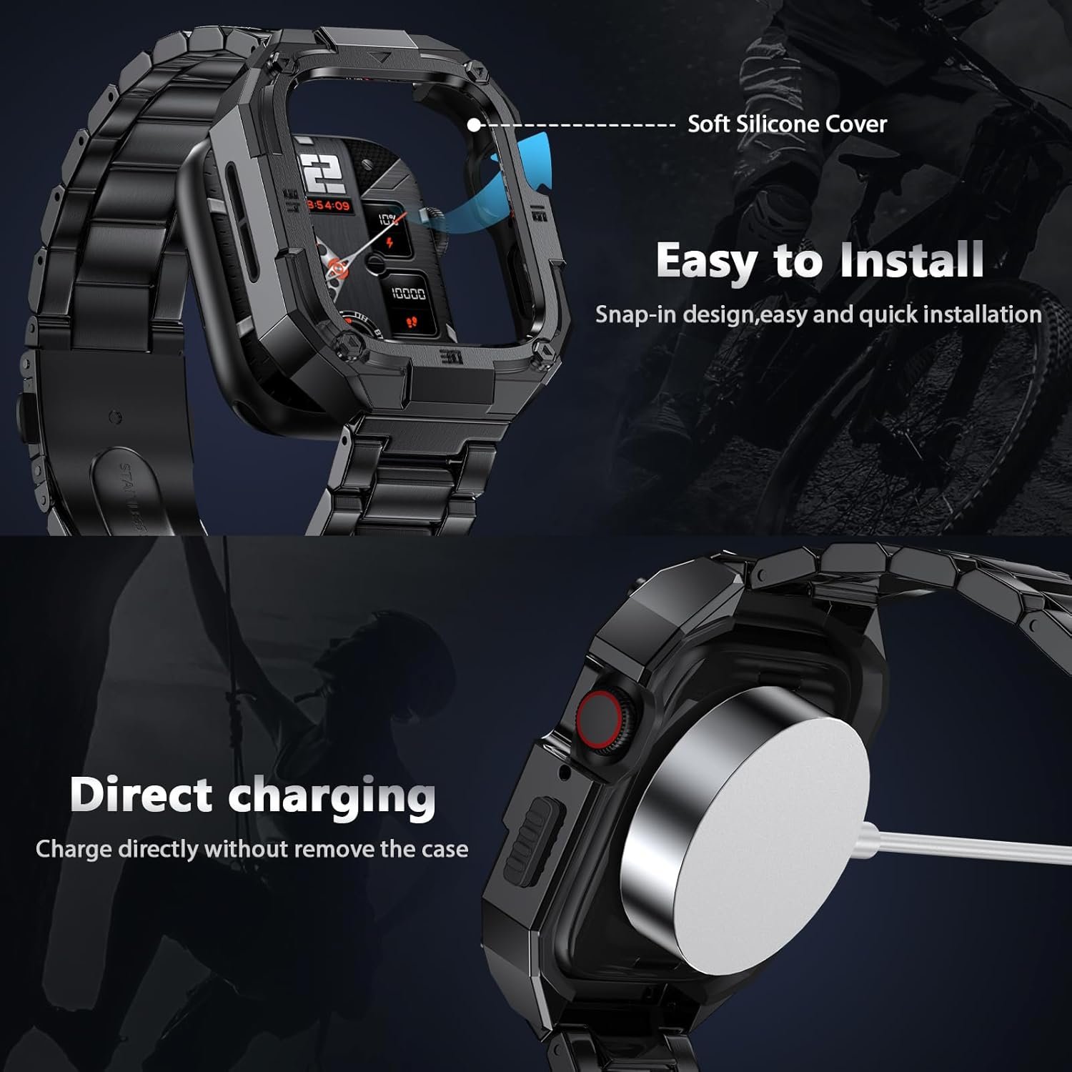 【Premium Stainless Steel Material Case & Band】ELECTIM 46mm apple watch band for men is made of top-grade solid stainless steel 316L(outside) and soft TPU(inside), which is rugged, shock-proof and drop-resistant. This iwatch series 10 band with case is designed with all-round frame protection (without bottom cover), which is convenient for you to charge directly without removing the case