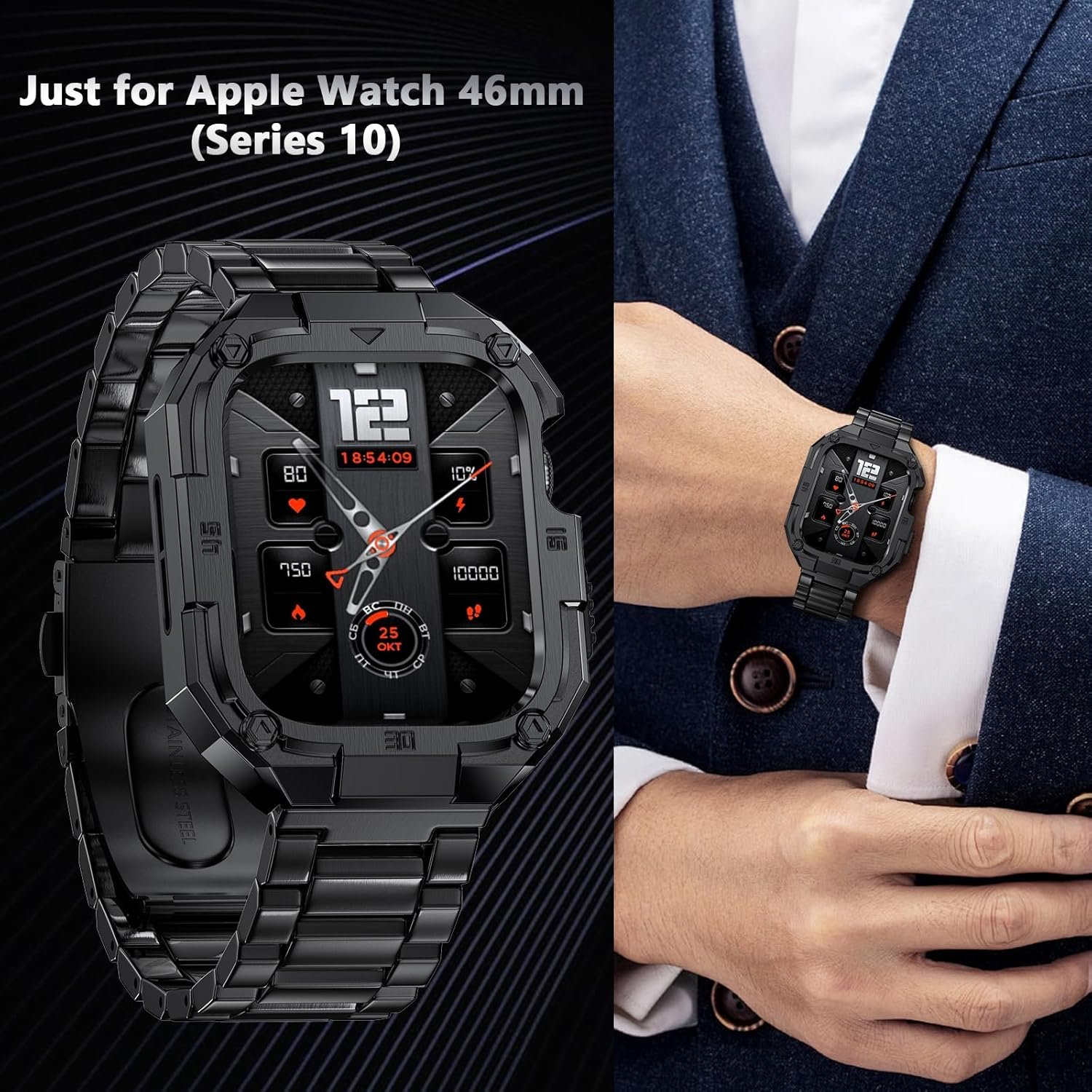 【Compatible Modes】This stainless steel band with case compatible with Apple Watch Series 10 46mm(2024) only. Fits wrists of 6.2” – 8.8” (157mm – 223cm)