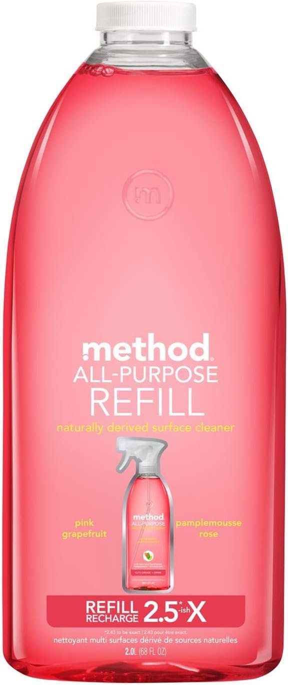 Method All-Purpose Cleaner Refill, Pink Grapefruit, Plant-Based and Biodegradable Formula Perfect for Most Counters, Tiles and More, 68 Fl Oz, (Pack of 2)