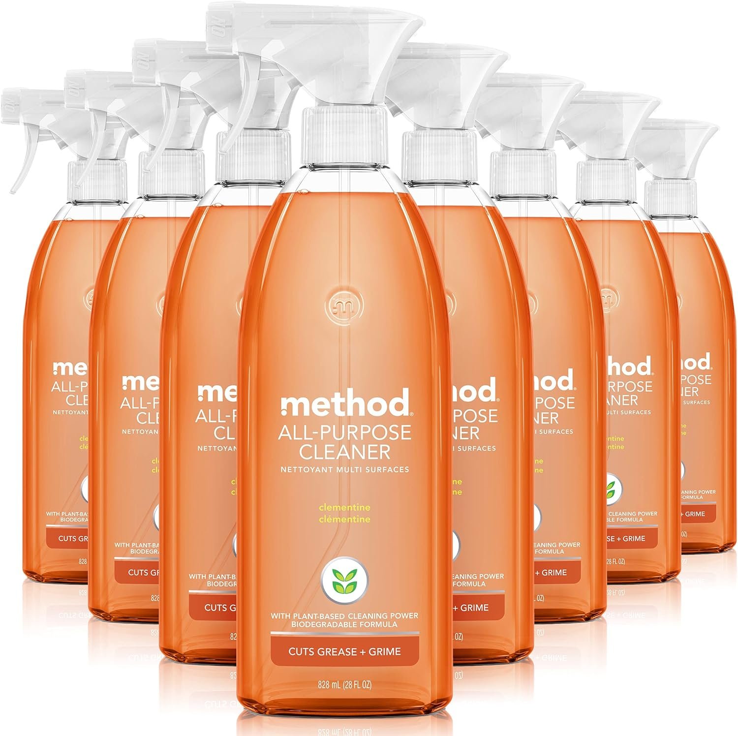 Method All-Purpose Cleaner Spray, Clementine, Plant-Based and Biodegradable Formula Perfect for Most Counters, Tiles, Stone, and More, 28 Oz Spray Bottles, (Pack of 8)