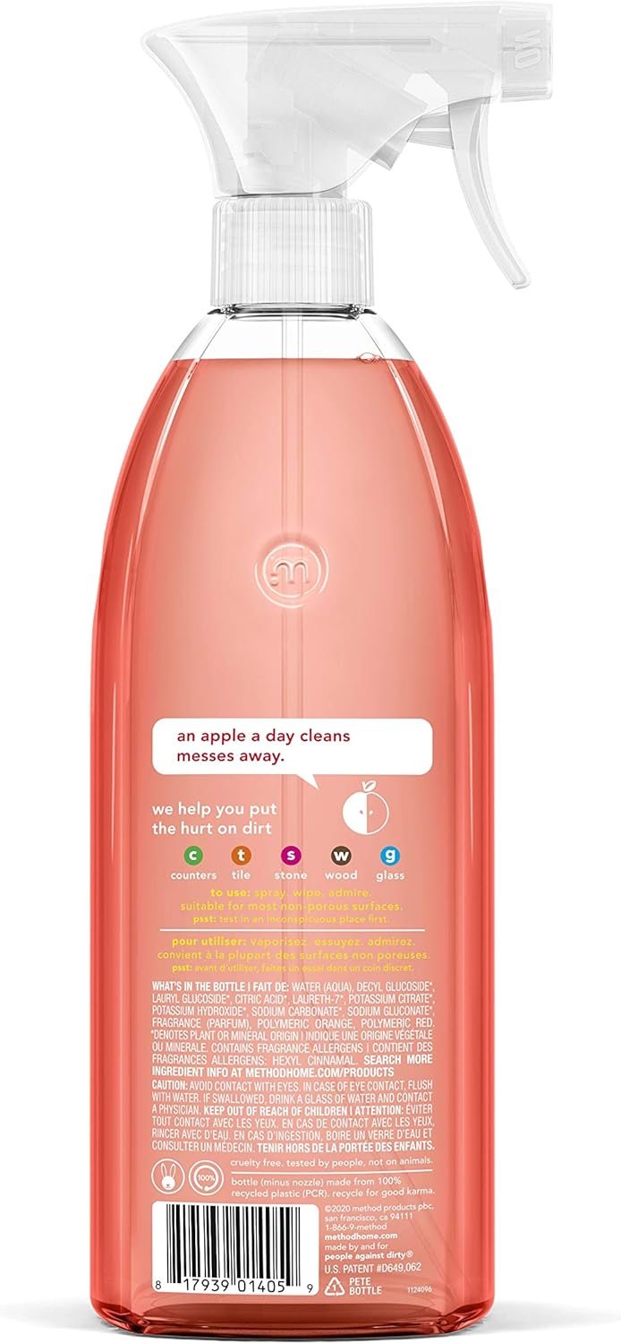 Method All-Purpose Cleaner Spray, Honeycrisp Apple, Plant-Based and Biodegradable Formula Perfect for Most Counters, Tiles, Stone, and More, 28 oz Spray Bottle, (Pack of 1)