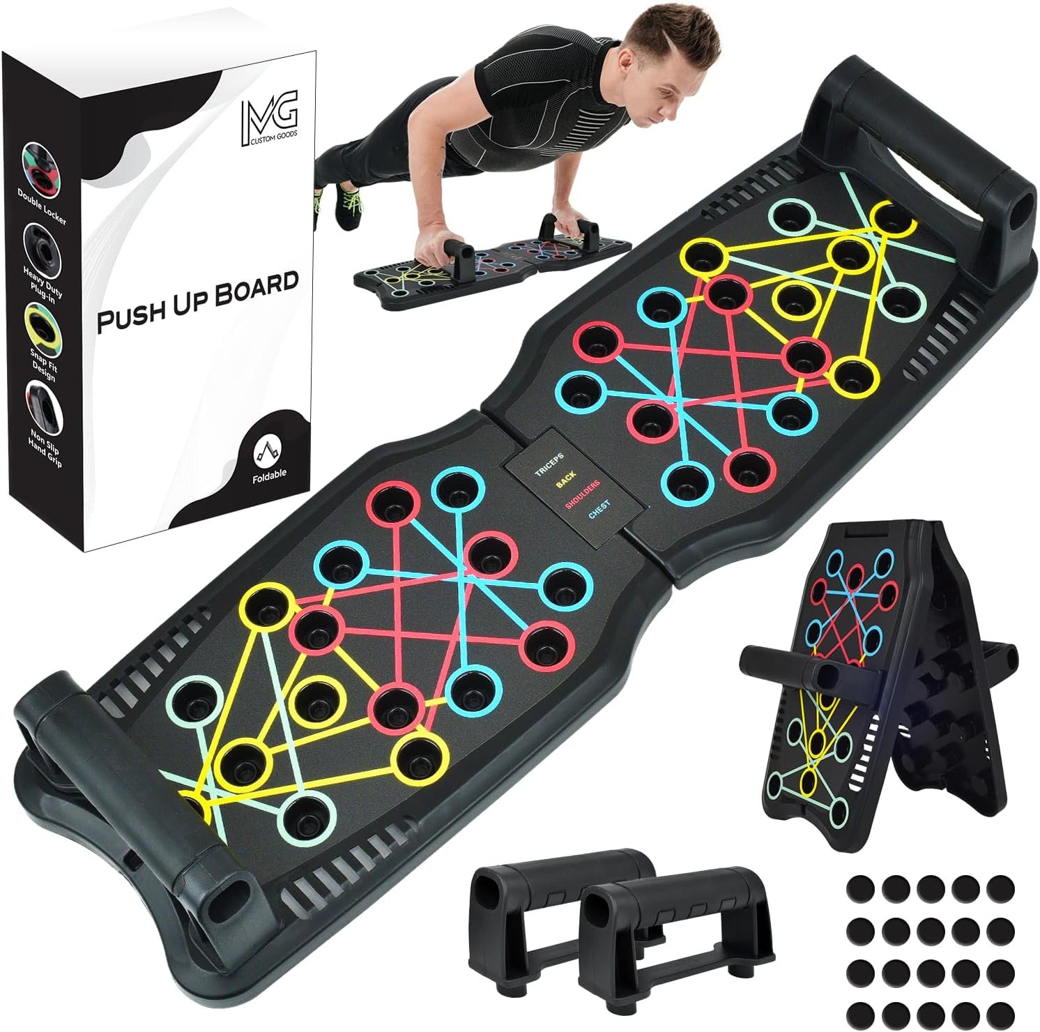 MG Push Up Board for Men & Women, Multi-Function Foldable Press Board, Muscle max Push Up Handles, Fitness Strength & Exercise Training Equipment for Home Workout with 2 BONUS Accessories (5x Resistance Bands & Jump Rope)