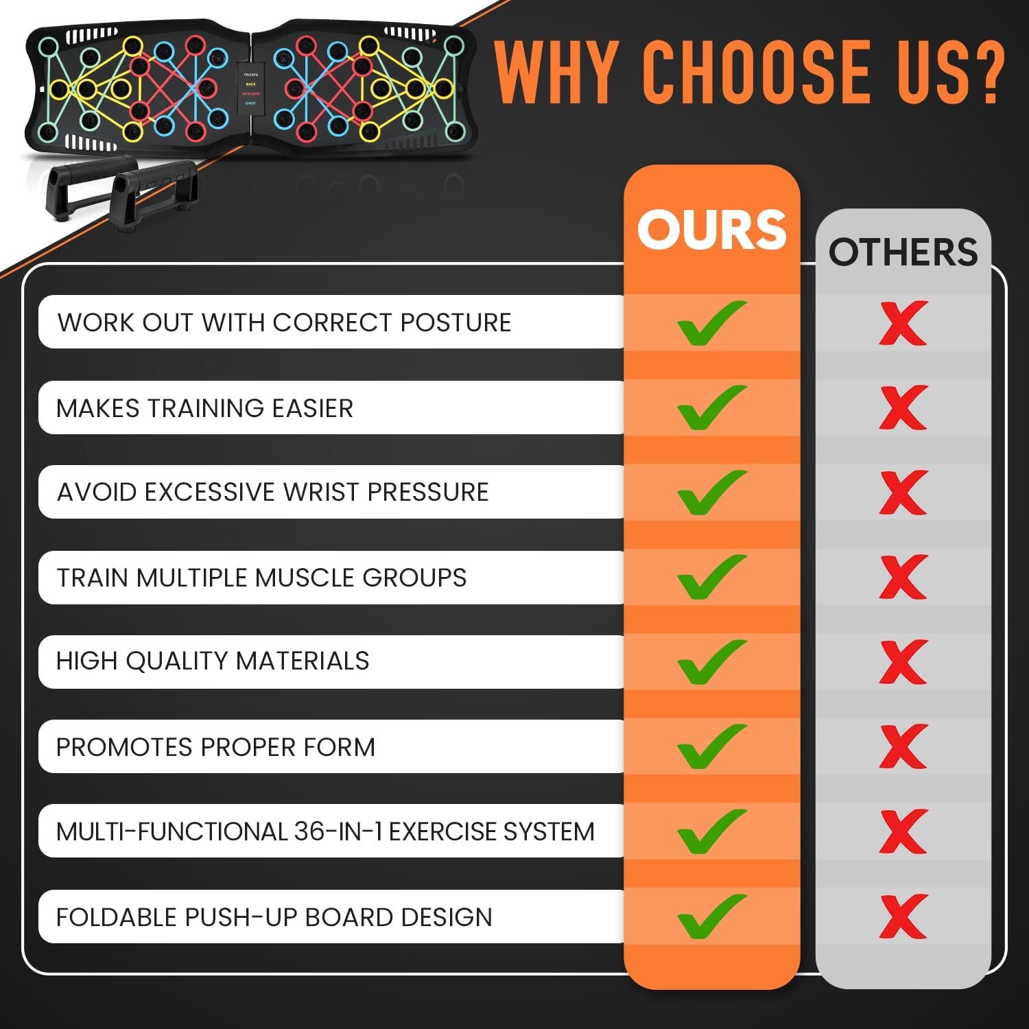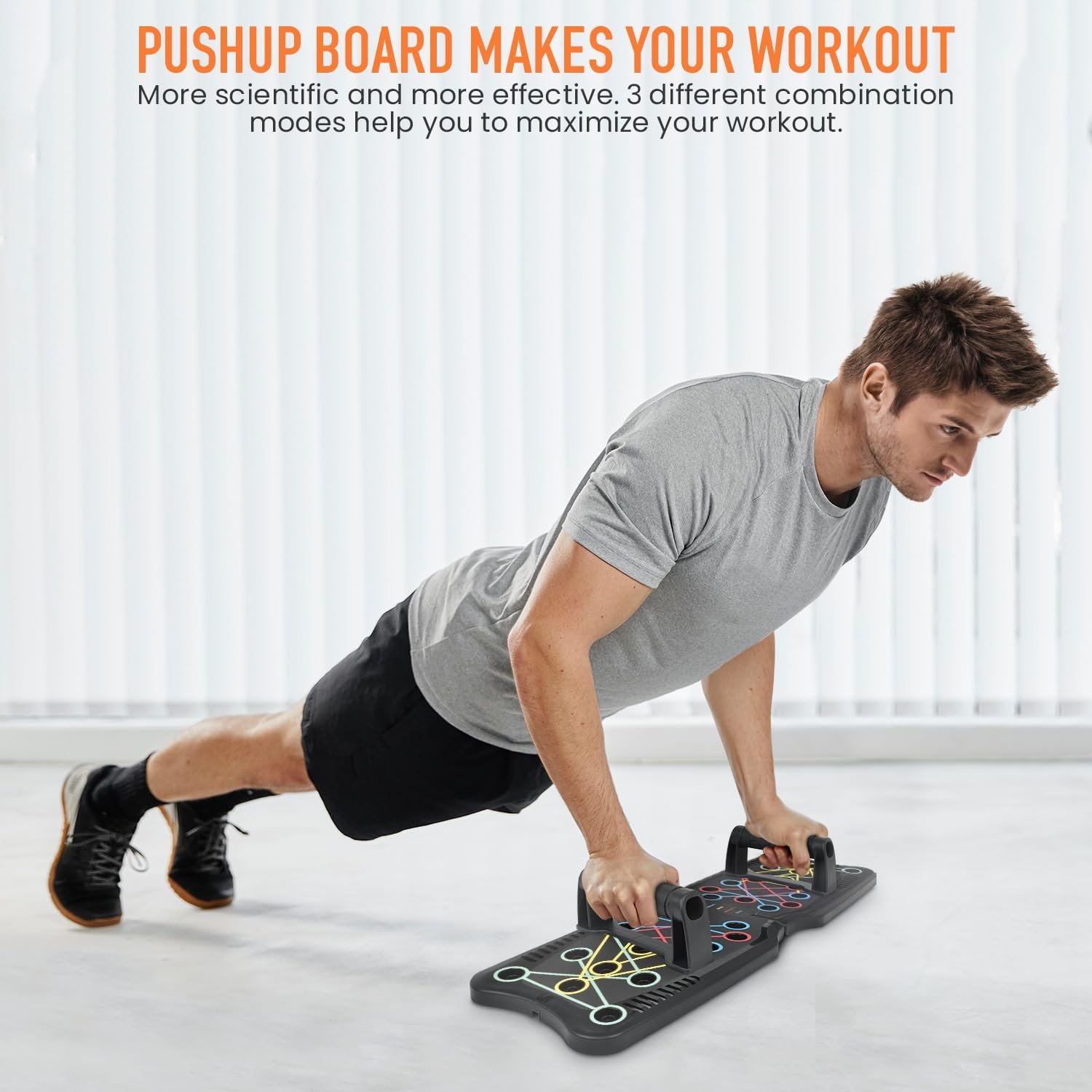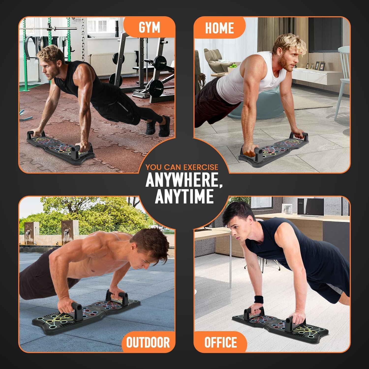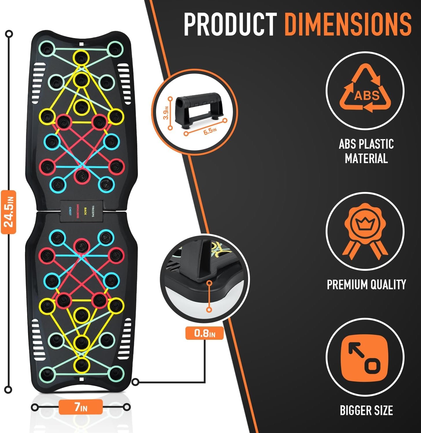 💪 𝐌𝐮𝐥𝐭𝐢-𝐟𝐮𝐧𝐜𝐭𝐢𝐨𝐧𝐚𝐥 𝐏𝐮𝐬𝐡 𝐔𝐩 𝐁𝐨𝐚𝐫𝐝 – A more focused and effective push up training system is color-coded, targeting the specific upper body parts like yellow for the back, blue for the chest, red for the shoulders, and green for the triceps. Work on different muscle groups to help you gain more muscles, strengthen and sculpt the upper body, and enhance stability.