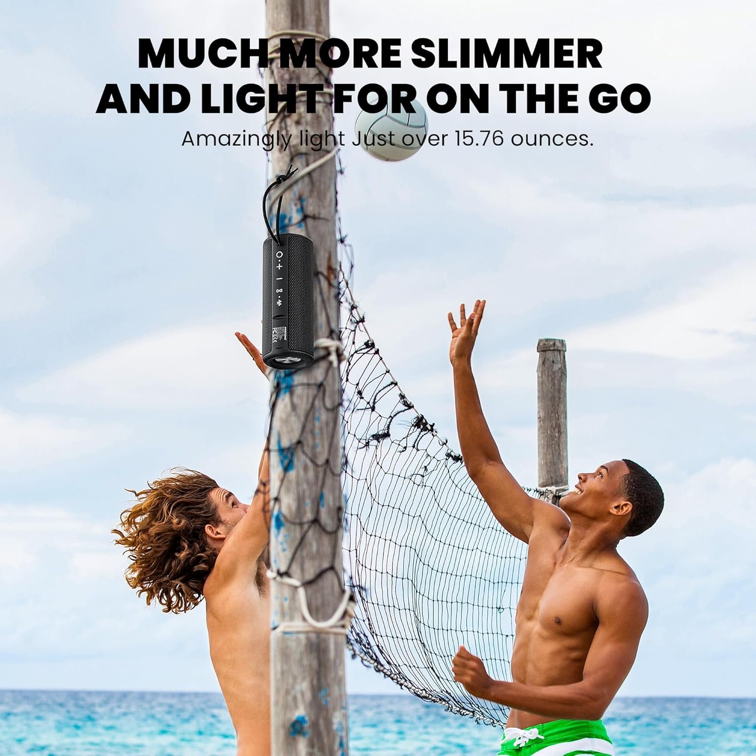[ Mesh Fabric Coated] The speaker is provided with a mesh fabric that provides enough grip, even when you are running with the speaker in your hands without having to worry about losing the grip. Further, both ends have rubberized tips that prevent slippage and also cushion the speakers even with big falls, which makes it perfect for skiing, golfing, biking, hiking, camping and many more.