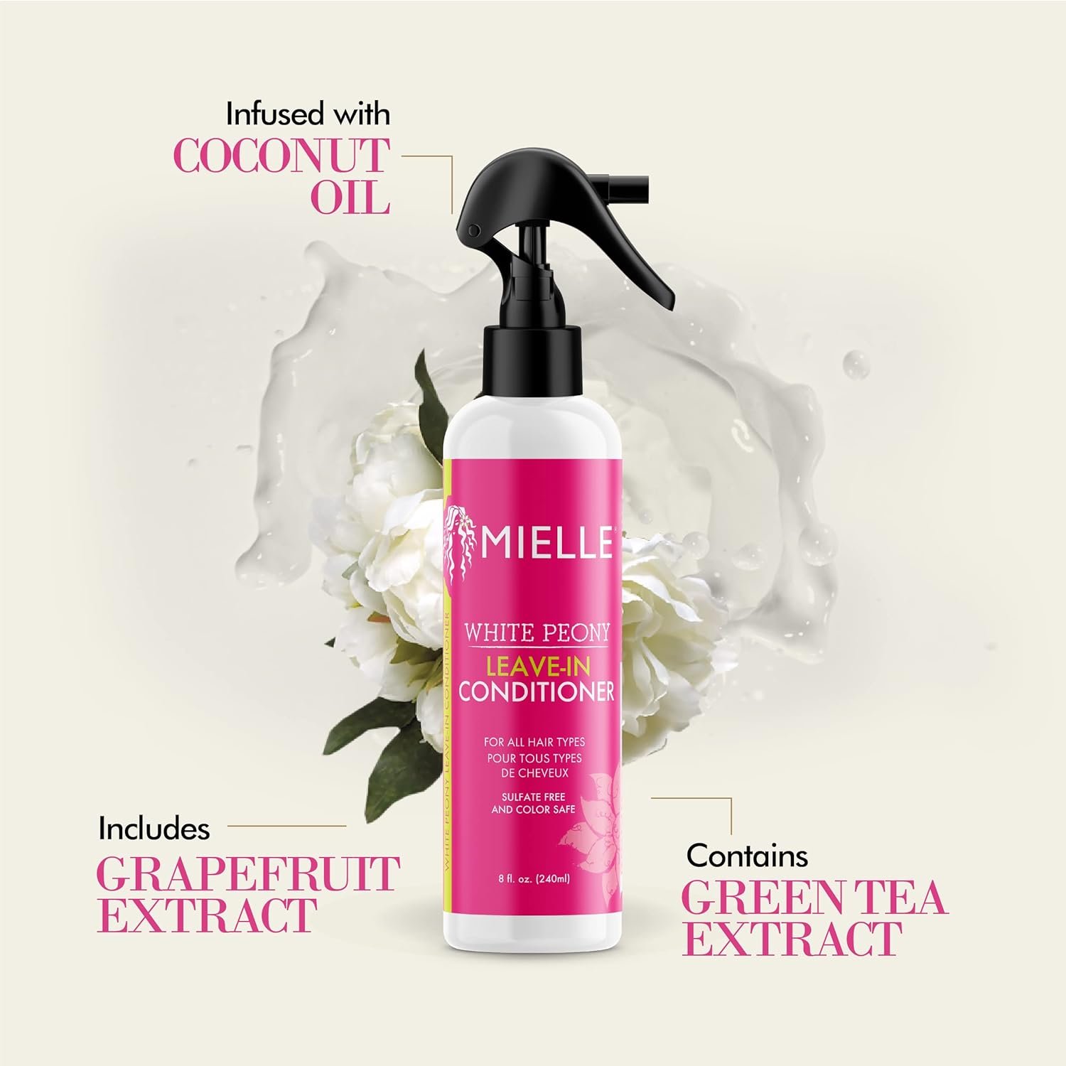 Mielle Organics White Peony Sulfate-Free Leave-In Conditioner, Color Safe, 8 Ounces