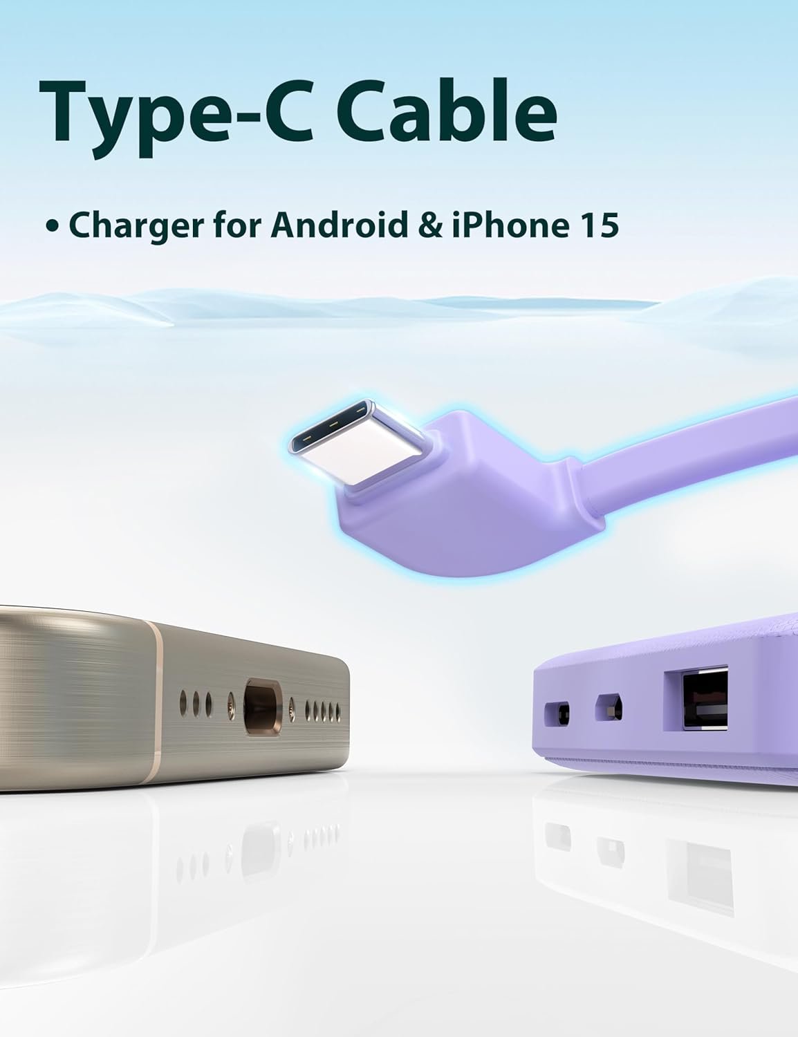 Three In One: This power bank is built-in type C cable and other cables that compatible with mobile phone directly. You do not need to take charging cables.