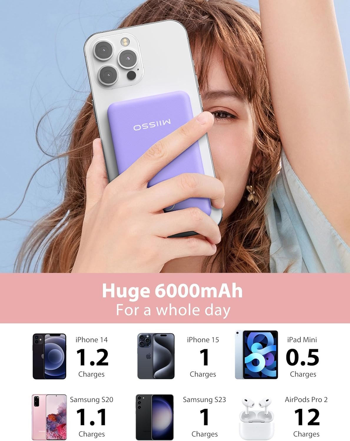 The 6000mAh power bank offers 1.2 times of recharge for iPhone 15.