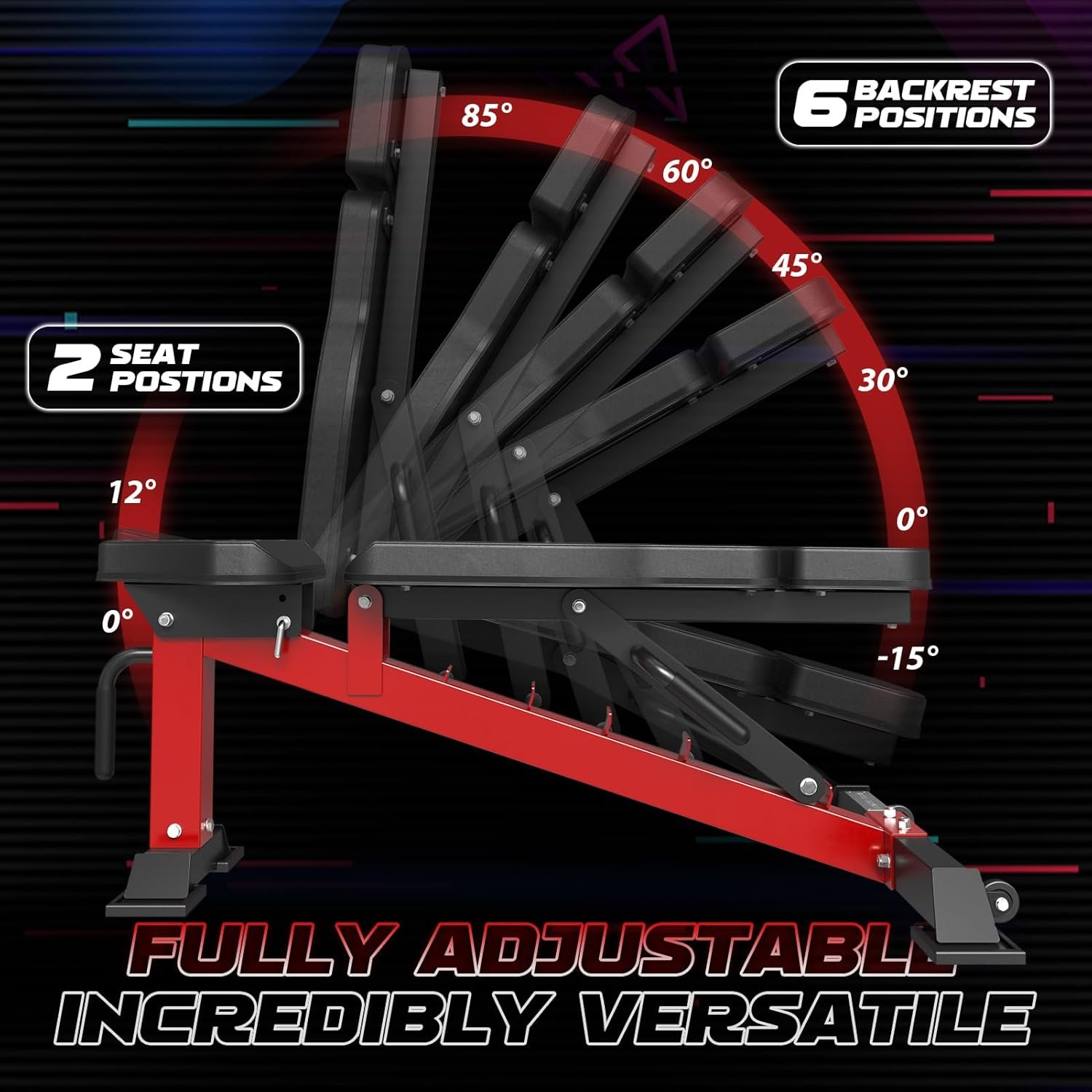 Adjustable Design: With a 6-position adjustment, this workout bench is capable of supporting 85°, 60°, 45°, 30°, 0°, and -15° angles, giving you the flexibility to perform a variety of exercises. Whether you’re looking to perform a bench press, incline bench, or any other strength training exercise, this bench has got you covered.