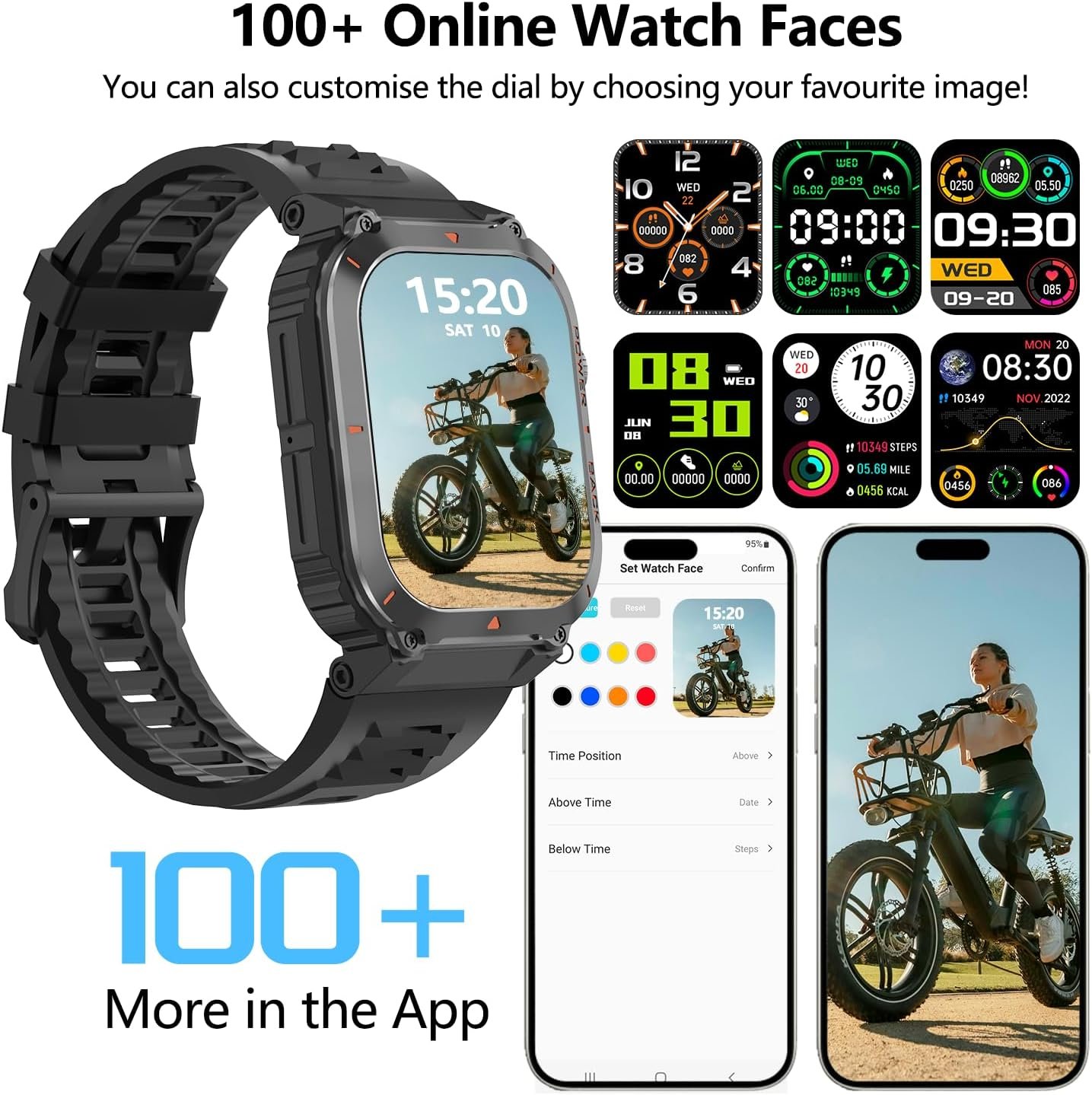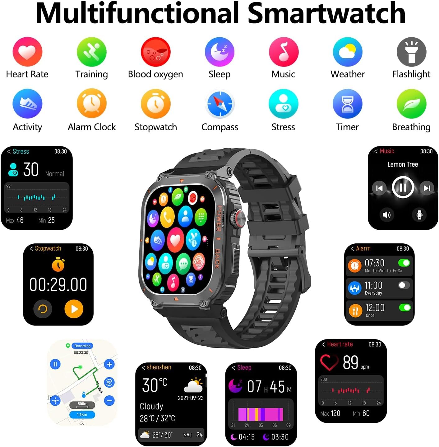 【More Smart Tools】Apart from the features mentioned above, this smartwatch also offers other useful daily functions such as Compass,Altitude,Air Pressure,smart notifications, music control, camera control, weather forecast, sedentary reminders, alarm clock, stopwatch, timer, etc. Compatible with most Android and iOS or above smartphones.
