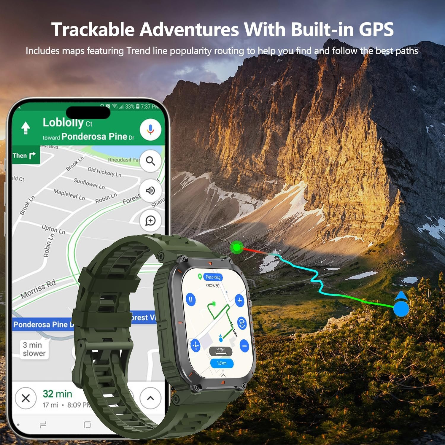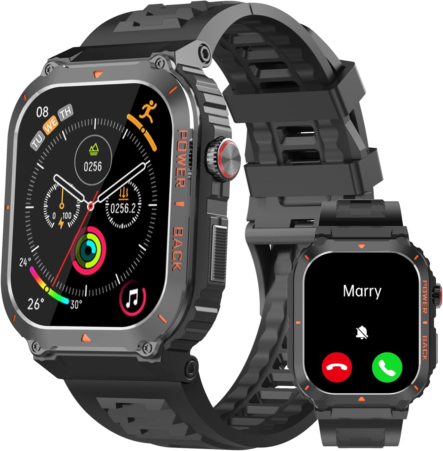 【Military Standard Quality + Ultra-Long Life Battery】- The frame of the military smart watch for men is made from a special aluminum alloy material,successfully passed military tests, is rugged, waterproof, dustproof, and can handle all the extreme environments.with a battery capacity of up to 420mAh. Offers 30 days standby time and 30 days for daily usage, say goodbye to frequent charge, no more need to bring so much cables for long trip!