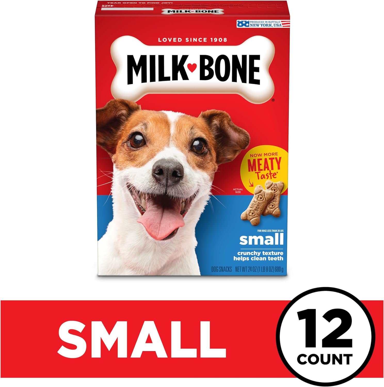 Contains twelve (12) 24 ounce boxes of small dog biscuits