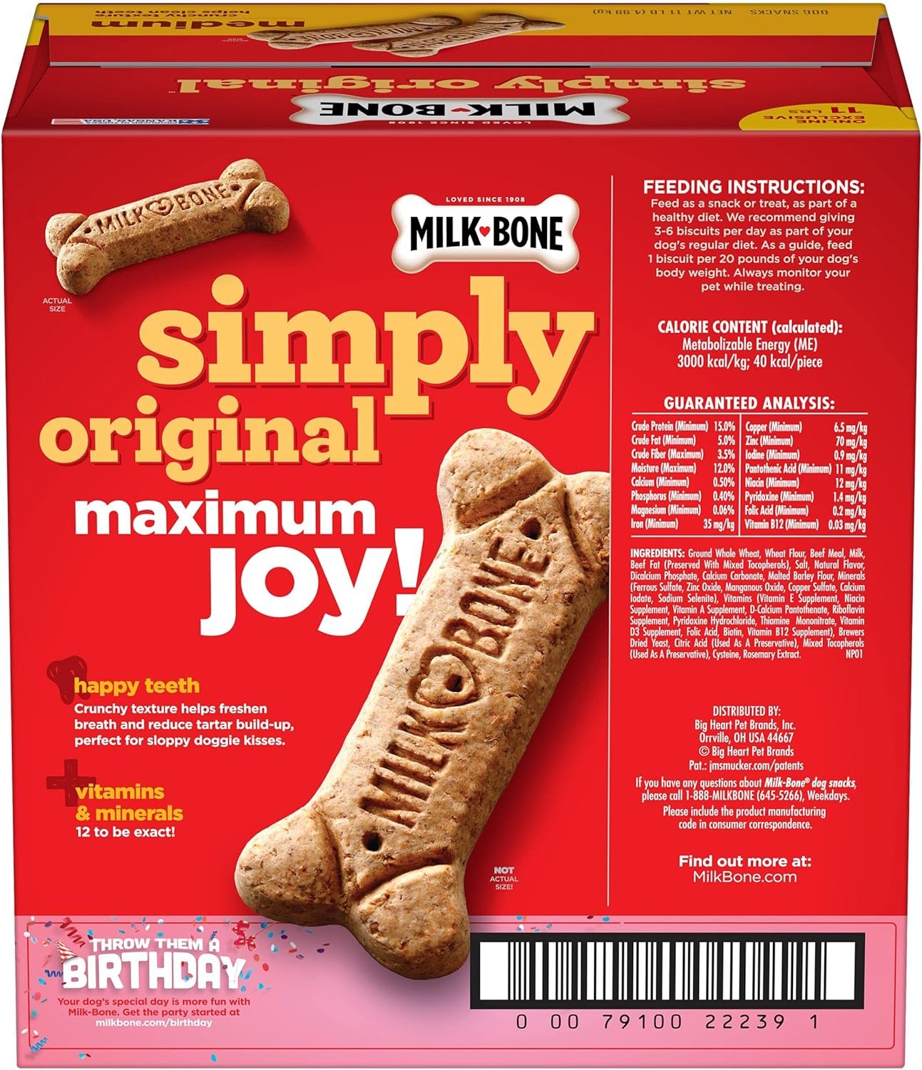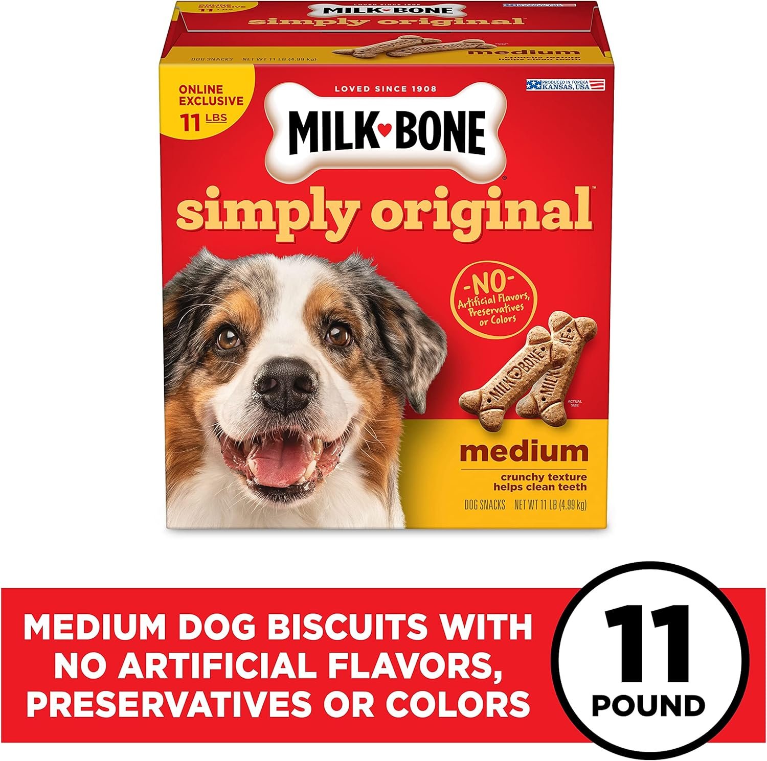 Contains one (1) 11-pound box of Milk-Bone Simply Original Medium Dog Biscuits