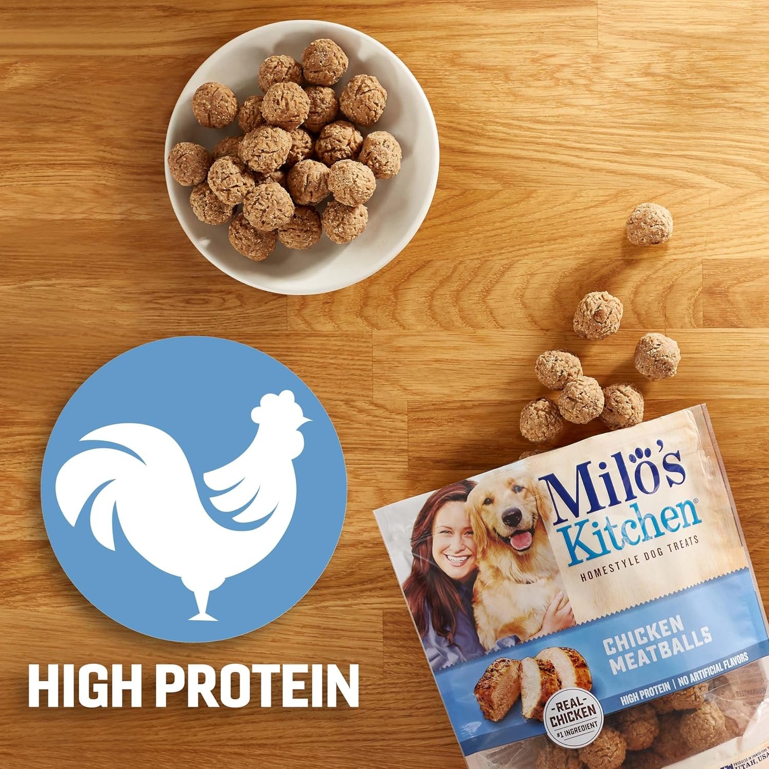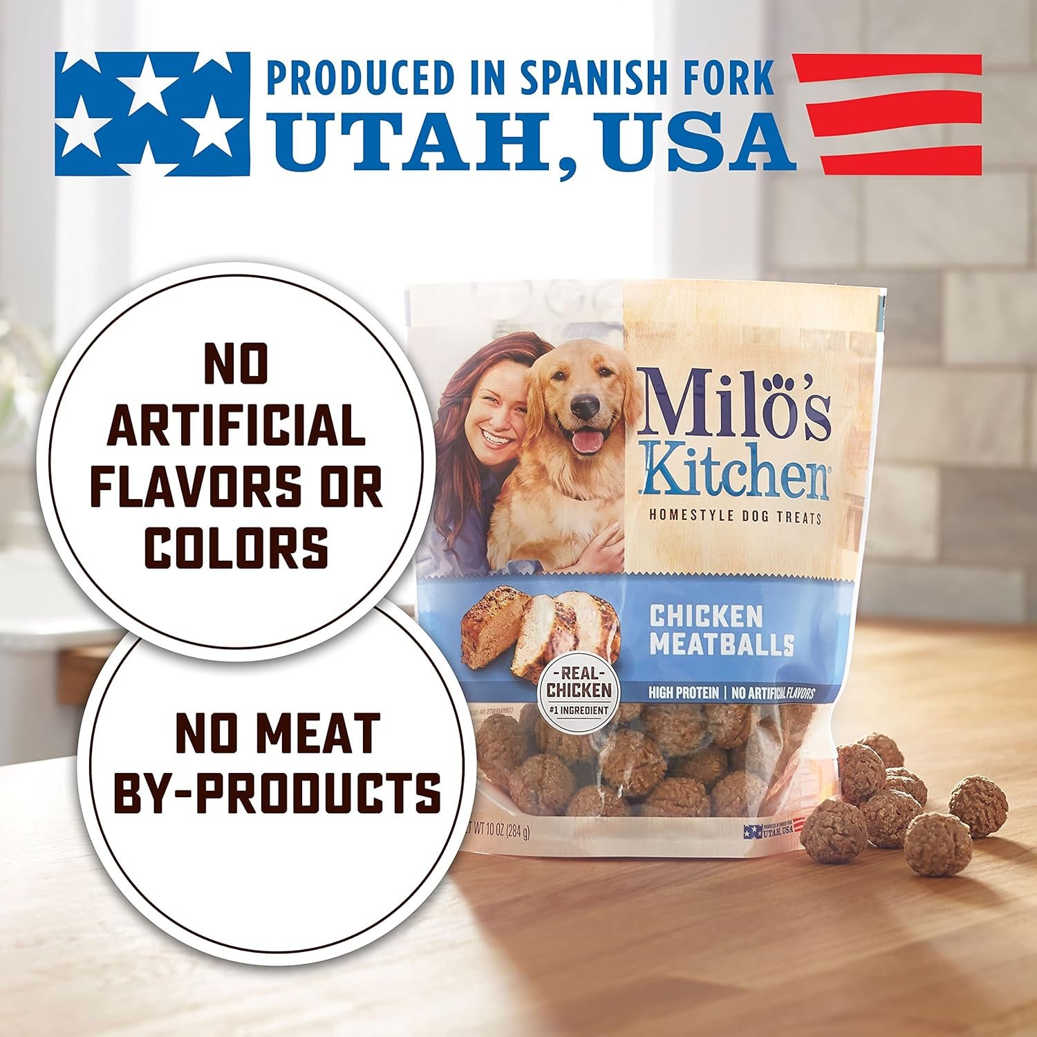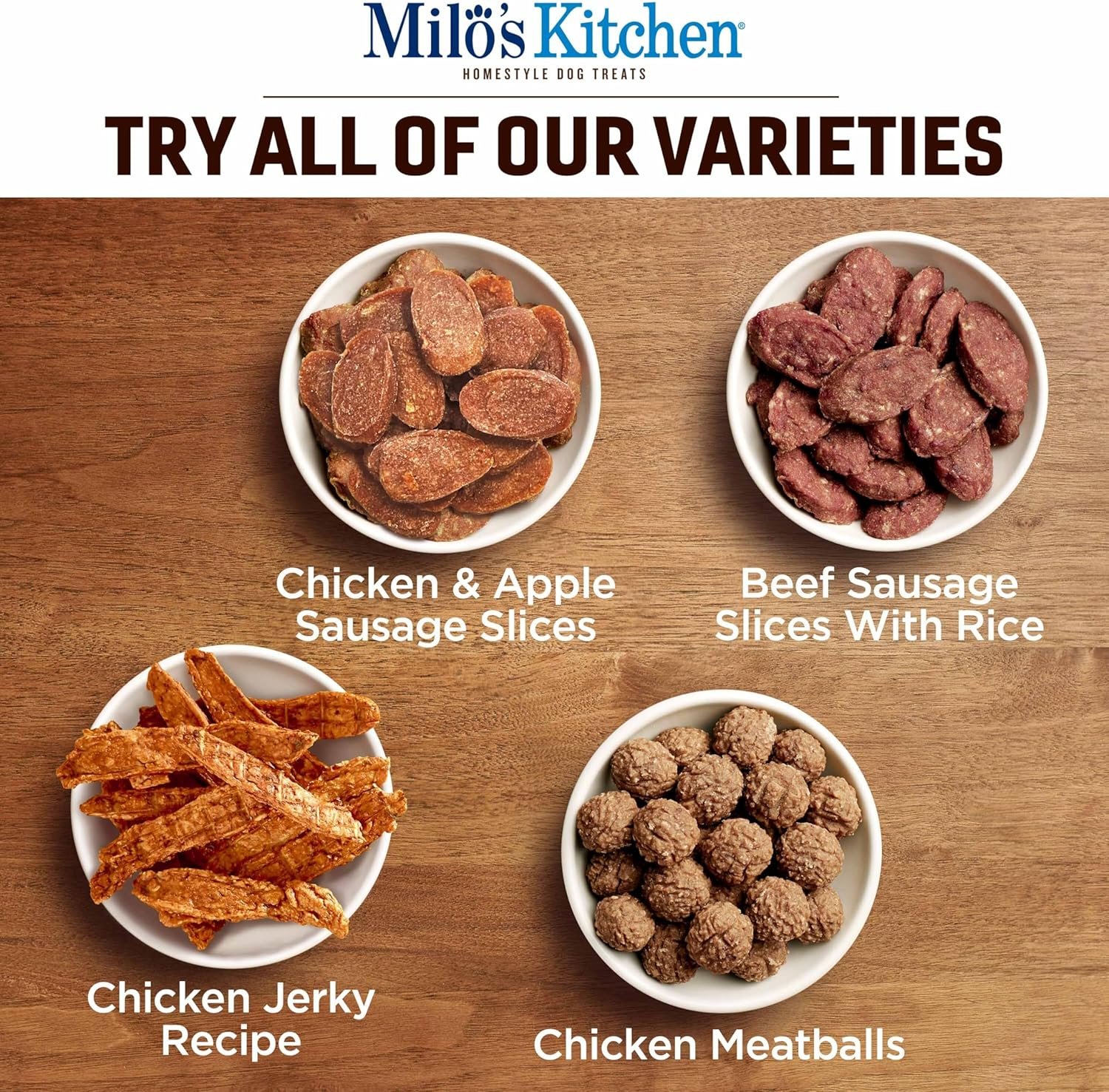 Contains one (1) 18 Ounce Bag of Milo’s Kitchen Dog Treats