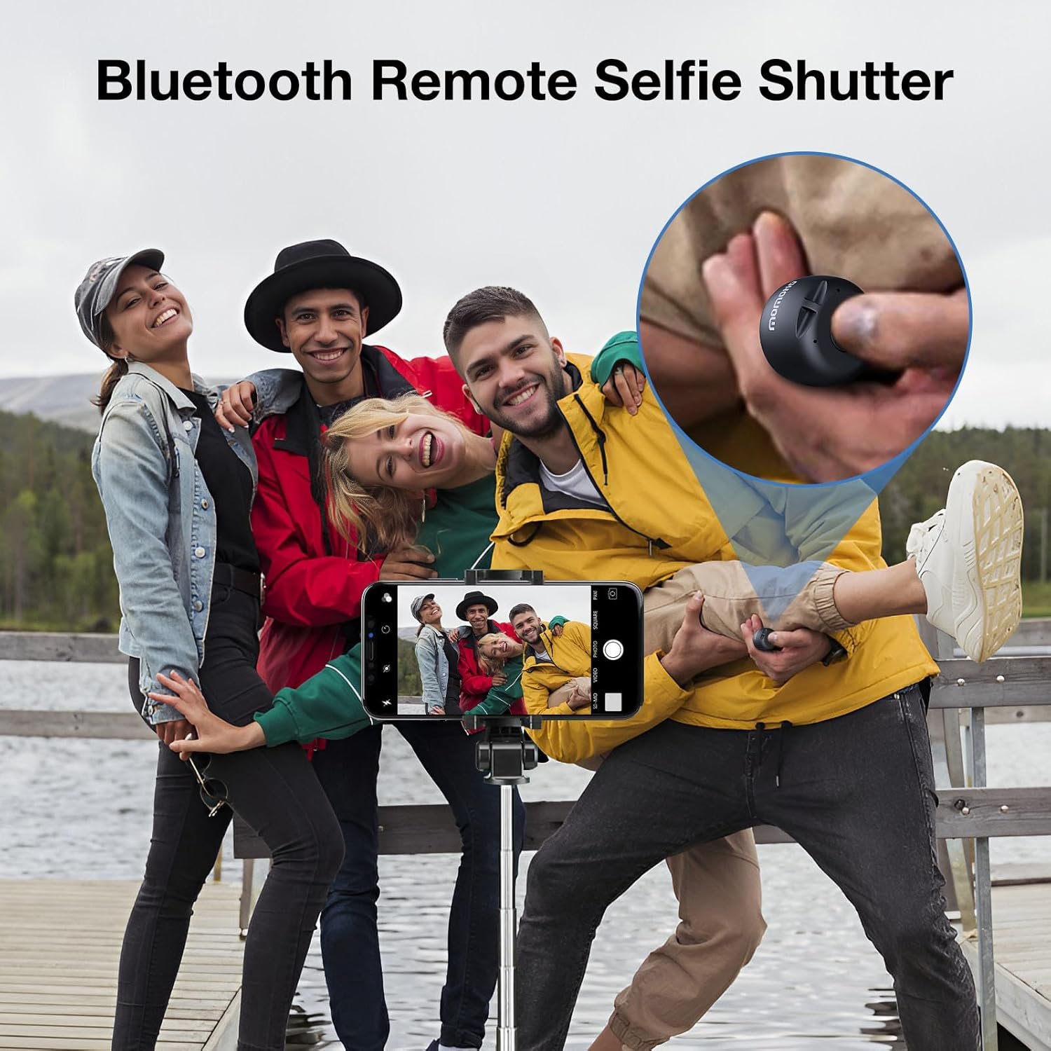Bluetooth Remote Shutter: The cute and tiny bluetooth speaker can also be used as a selfie remote control of your phone. Achieve the perfect selfie. This camera bluetooth remote control supports most Bluetooth-enabled mobile phones. Operating range is approximately 50 feet
