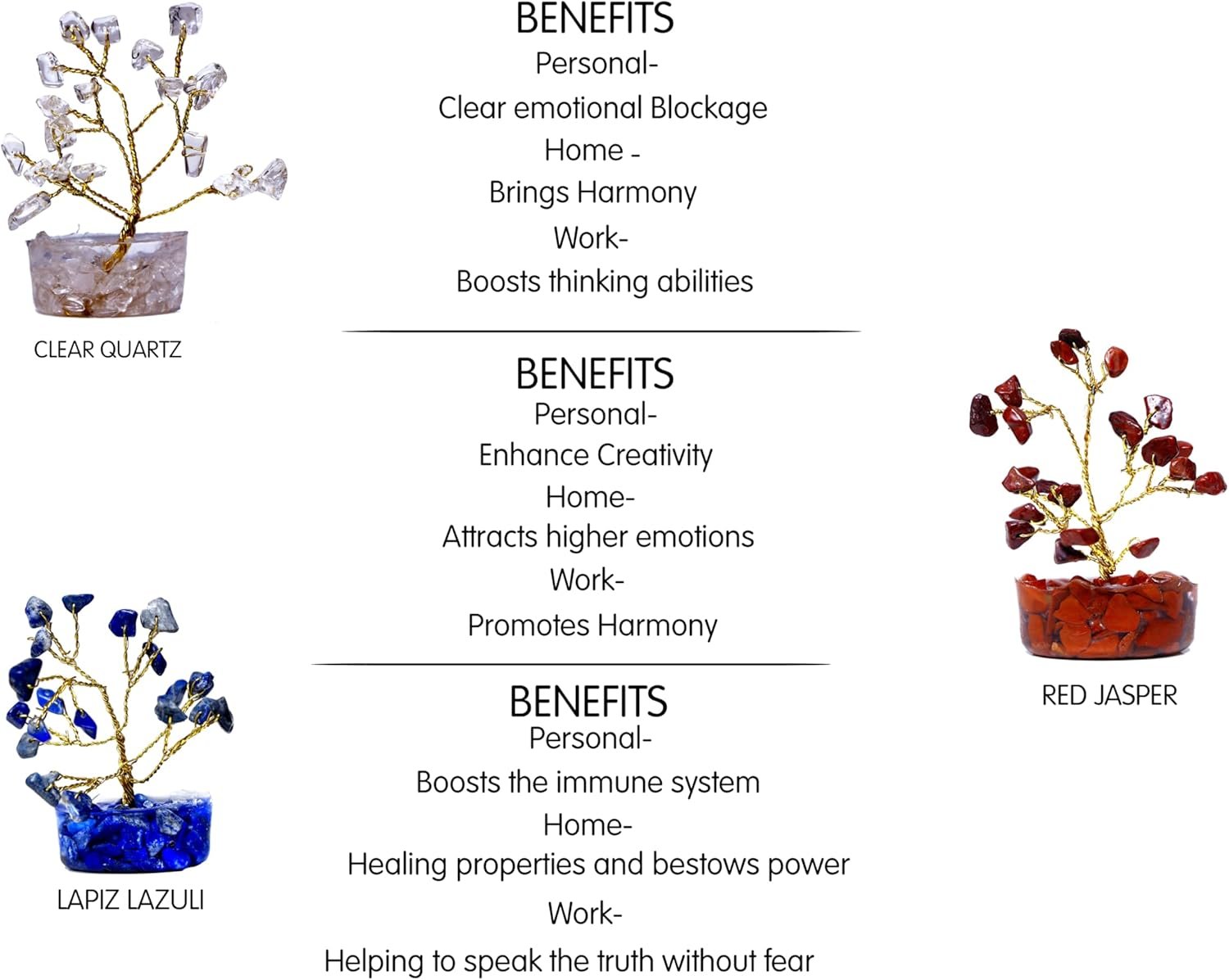 HANDCRAFTED DESIGNED: This handcrafted crystal tree is made up with copper wire, made by arranging small crystals in the shape of a orgone base tree. These trees are often made using wire to hold the crystals in place and create the branches and trunk of the tree. Size: 7-10 cm, 21 beads of crystals in each tree, handmade In India. All these crystals are naturally created which result in slight variations in terms of size, color, texture.