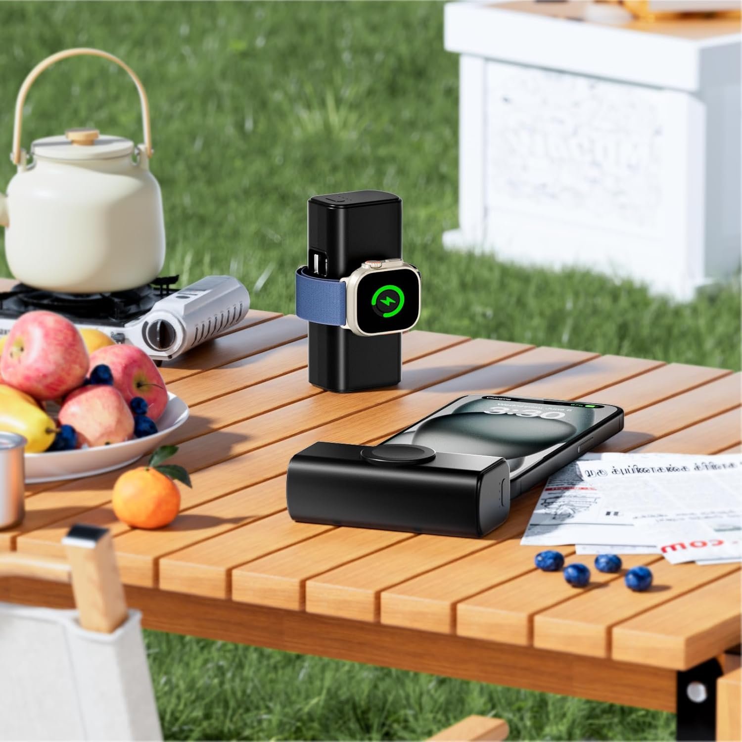 Apple Watch Portable Charger: Featuring the latest magnetic suction technology, this magsafe portable apple watch charger quickly and securely charges your Apple Watch with a snap. The bateria portatil ensures the convenience and security of charging and holding your apple watch in any orientation portrait or landscape. You can even charge your phone and apple watch simultaneously
