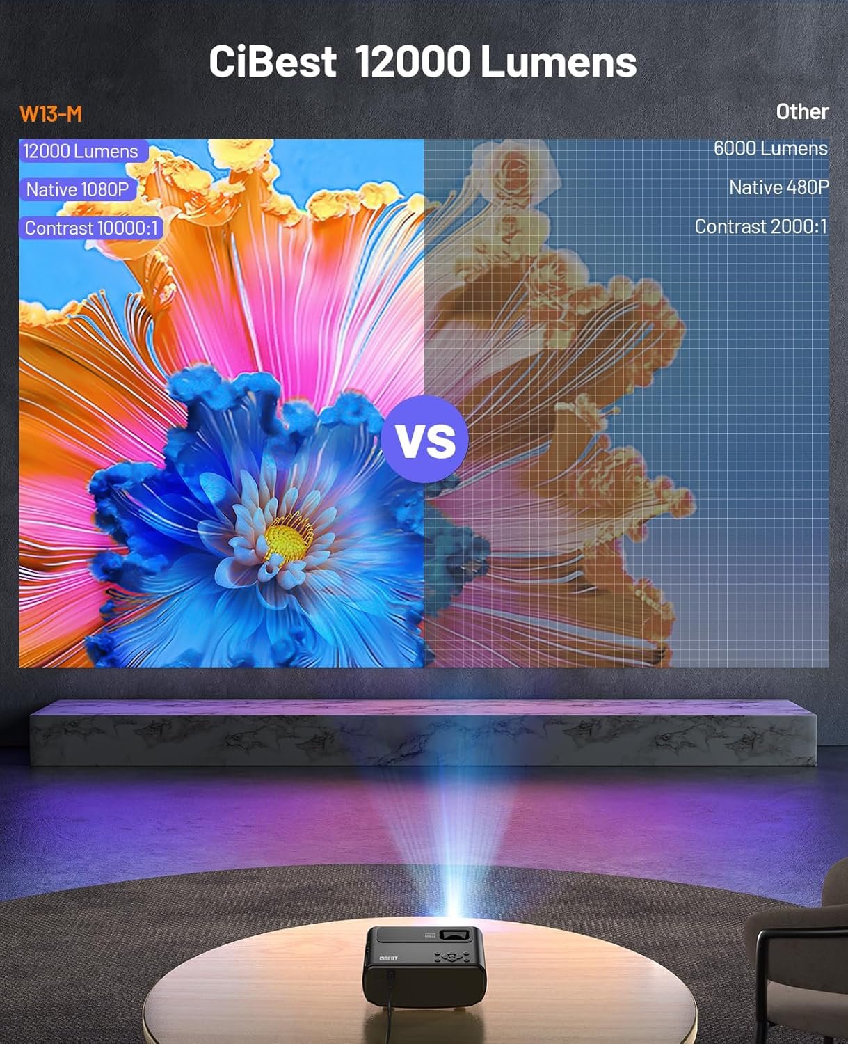【OPTIMAL VISUAL PERFORMANCE】Experience enhanced visuals with the 2024 CiBest mini projector, offering 90% greater brightness compared to other portable projectors. With Native 1080P Full HD and 10000:1 contrast ratio, this 4K projector delivers astonishingly realistic images for movies and videos. The home projector’s diffuse reflection technology ensures a gentle projection image that protects your eyes.