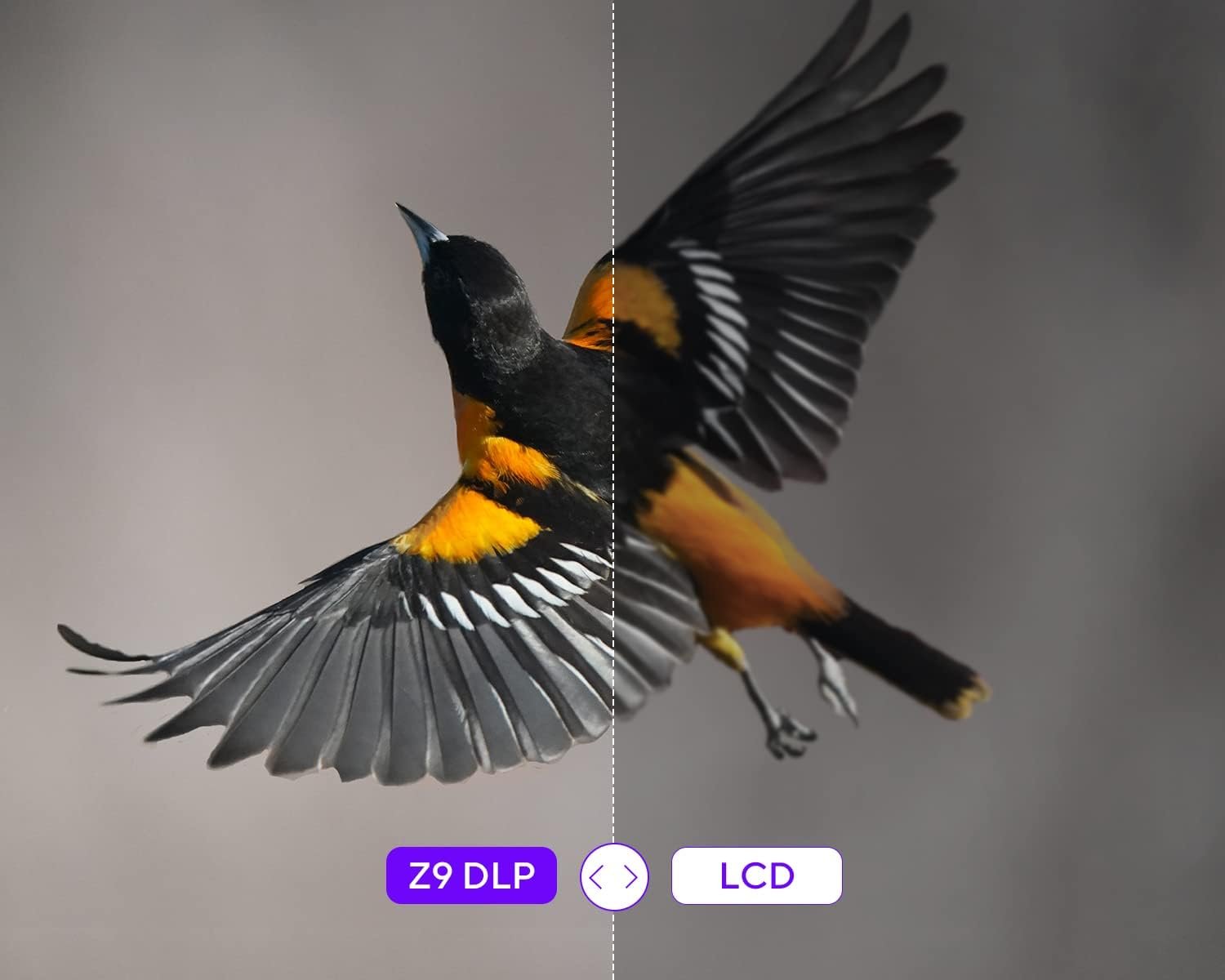 Uses Texas Instruments DLP chip, generating less heat Delivers vibrant colors and more vivid images than LED projectors High-performance fan ensures fast heat dissipation and far lower noise levels than LED projectors Built-in 1.5W HiFi dual speakers bring you a great audio and visual experience.
