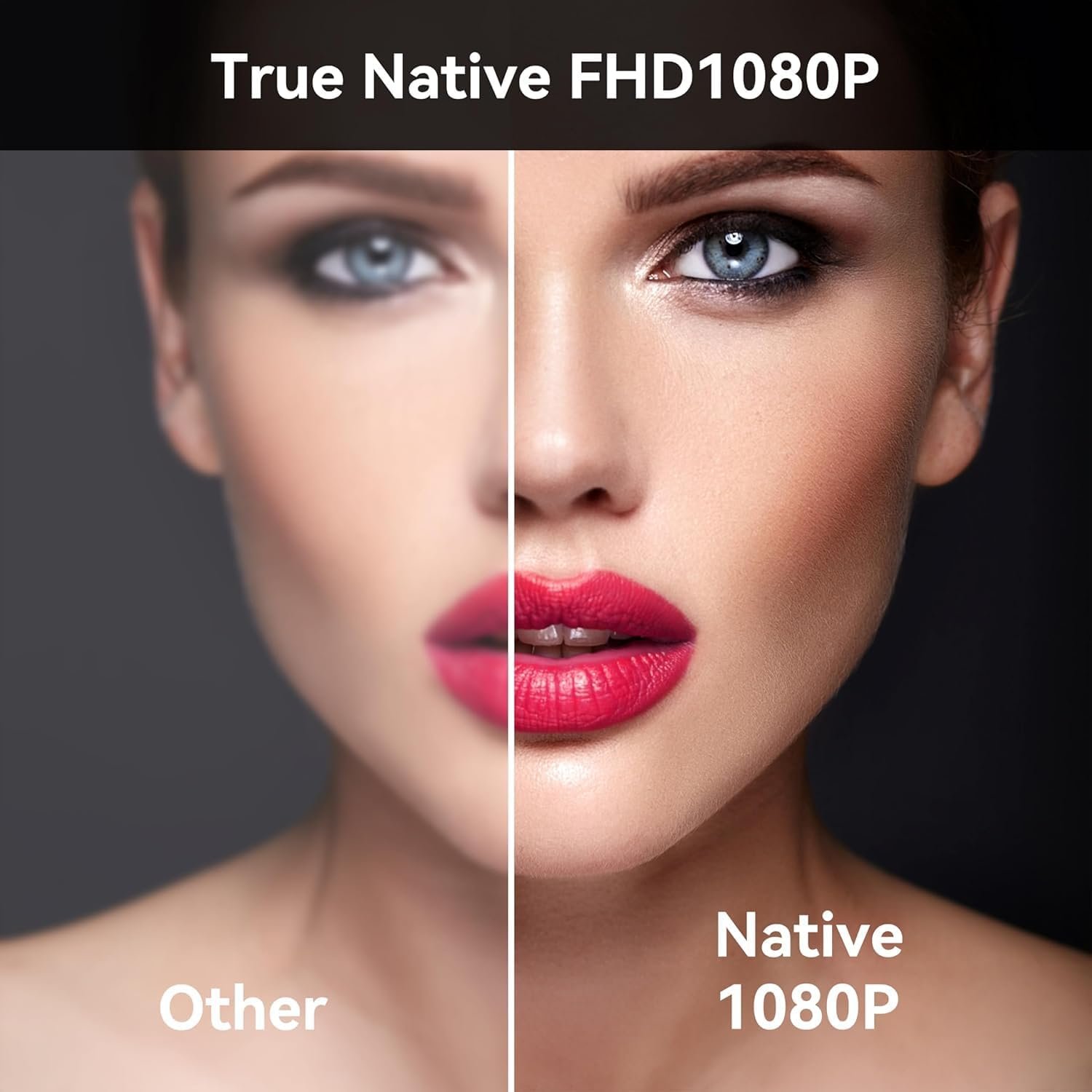【Native 1080P & Support 4K Decoding】The HY320 mini projector is upgraded to the latest 300 ANSI 12000 lumens LED light source with support 4K decoding, featuring a native resolution of 1920*1080 and a high dynamic contrast ratio of 14000:1, which doubles the image brightness, clarity, and color richness, maximizes color reproduction, and presents you with dynamic and colorful HD projected image quality.