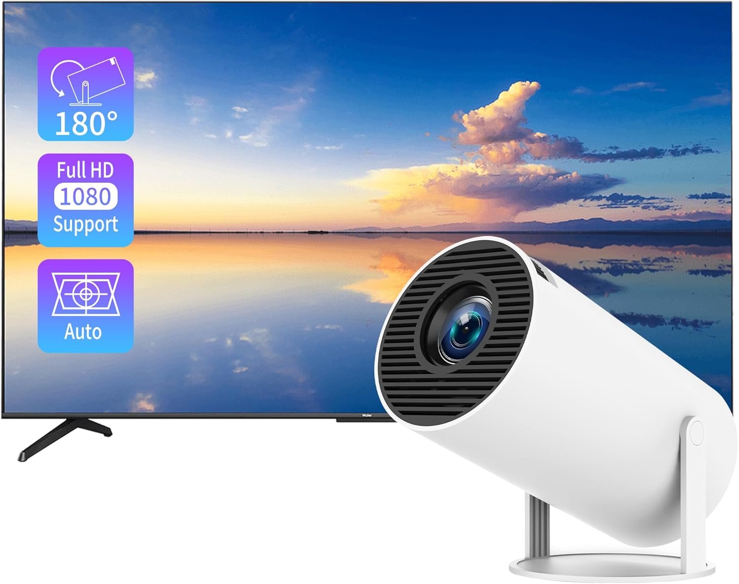 【Auto Keystone Distortion Correction and 1080P Support】Enjoy automatic vertical keystone correction, eliminating distorted images and ensuring perfect alignment for your home theater. With support for 1080P resolution and an impressive 15,000:1 high dynamic contrast ratio, this device delivers vivid, true-to-life colors.