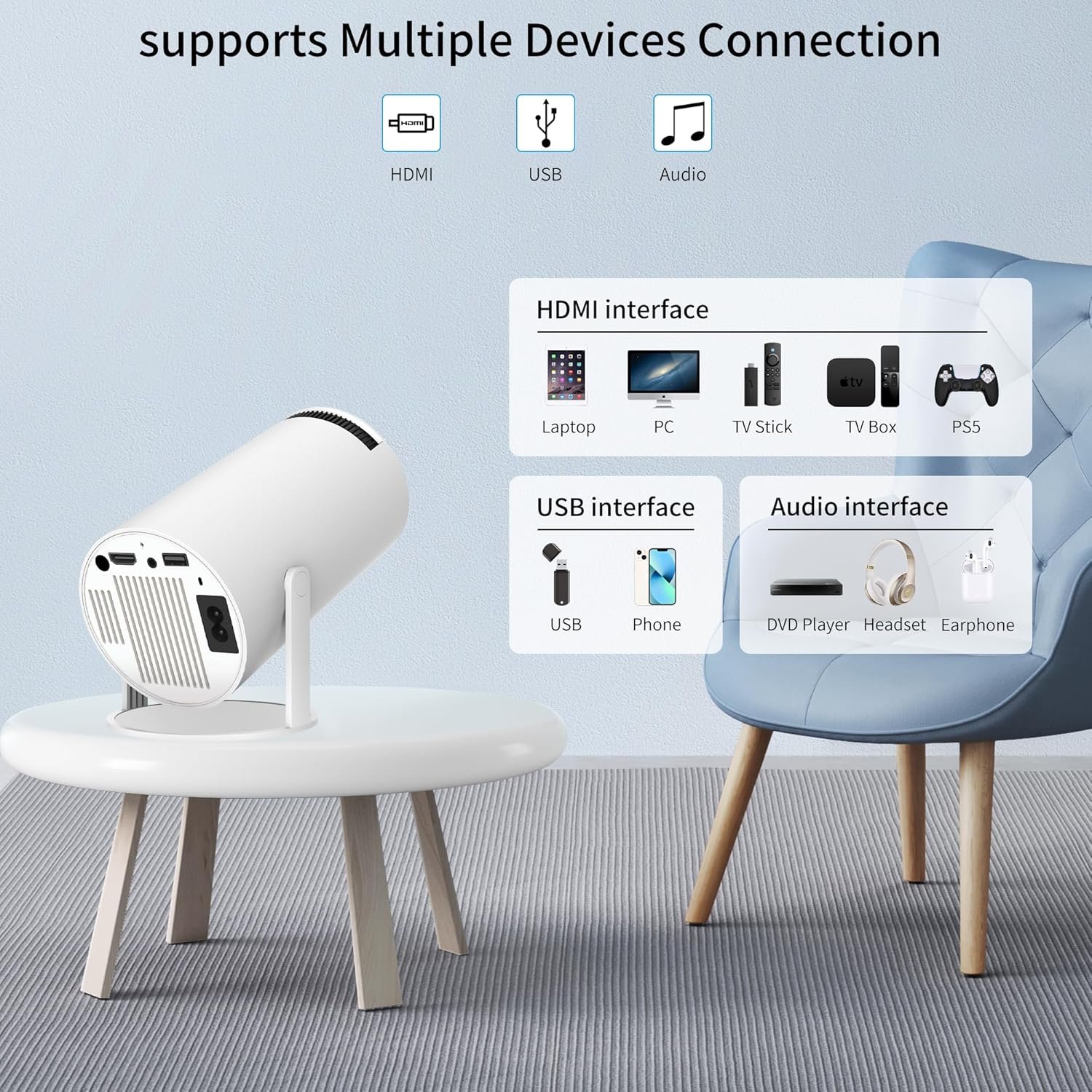 【Versatile Interfaces】Equipped with HDMI, USB, and 3.5mm audio ports, it allows you to easily connect various devices.