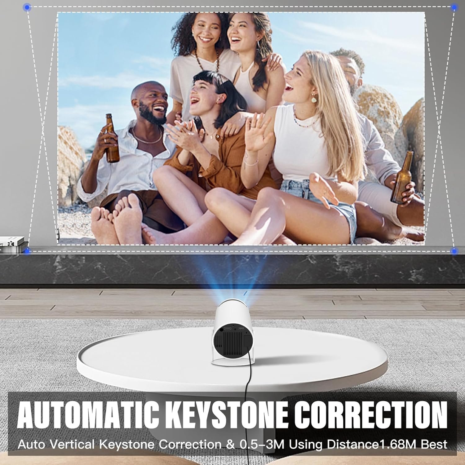 【Auto Keystone Correction】Automatic keystone correction and manual zoom function to get the best screen position. Projection distance between 0.5-3 metres and projection aspect ratio of 16:9 /4:3. No need to buy an extra screen for your room mini projector, just a clean and flat white wall. Allows you to set up your own home theatre anywhere to watch movies, TV shows, photos, slideshows and play video games.