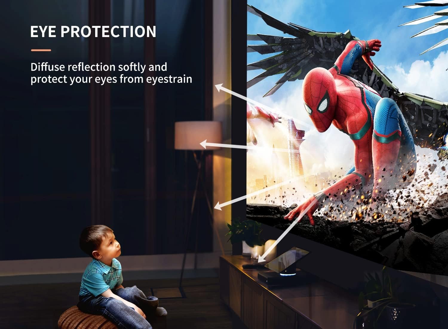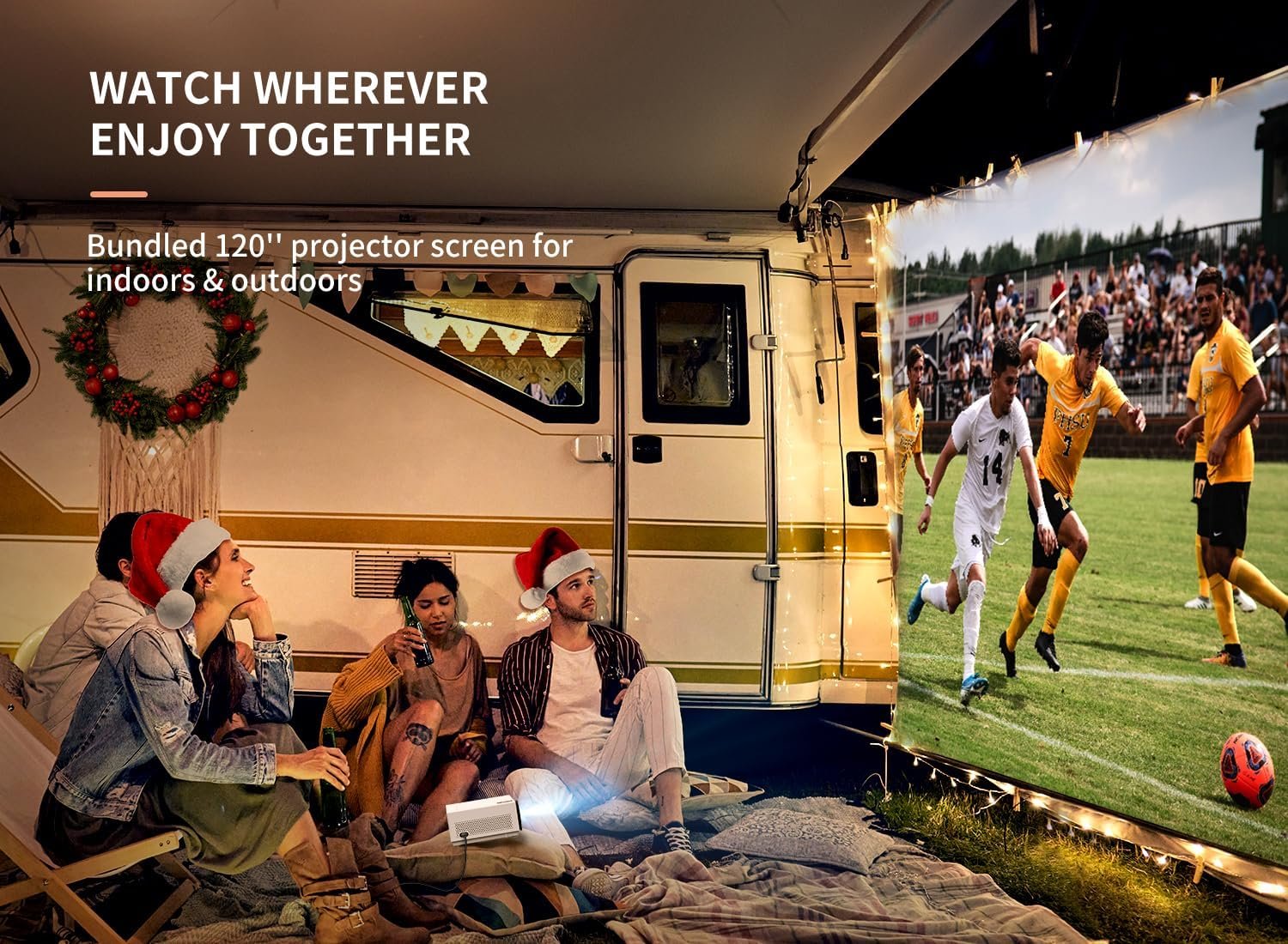 【40”-400” Display & 120” Screen Included】With the 75% zoom function or moving the projector to enlarge or shrink the display, you can enjoy screen sizes between 40”-400”, which will supersize your movies and video games. Besides, our outdoor projector comes with a 120-inch projector screen, enabling you to enjoy movies indoors or outdoors, ideal for home theater, outdoor movies, camping, and so on. Recommended optimal projection distance: 6.1 FT.