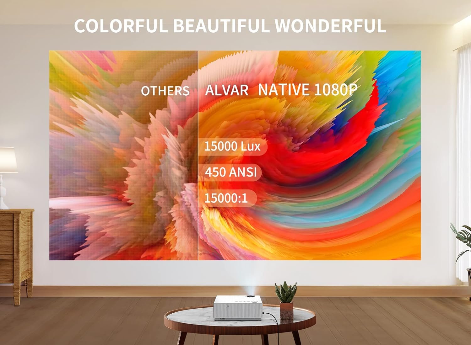 【Universal Connectivity & Lifetime Support】ALVAR RV500W video projector is widely compatible with TV sticks, DVD players, phones, laptops, USB drives, PS5, etc. With a wide array of connection options, including 2 HDMI, 1 USB, 1 AV, and 1 Audio Out ports, it opens the door to a world of endless entertainment. ALVAR offers 24/7 service, lifetime professional technical support for our projectors. Please feel free to let us know if you have any question. We care what you think!