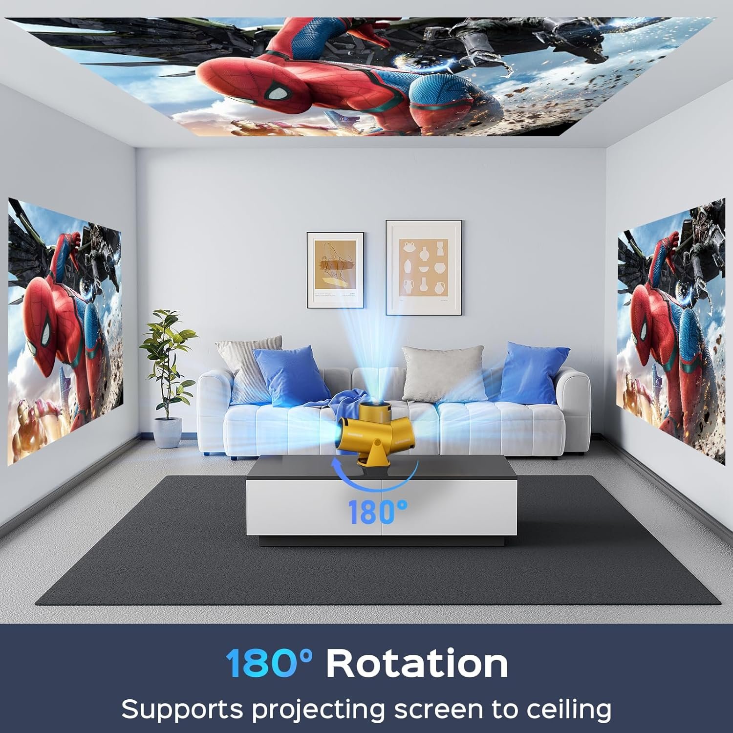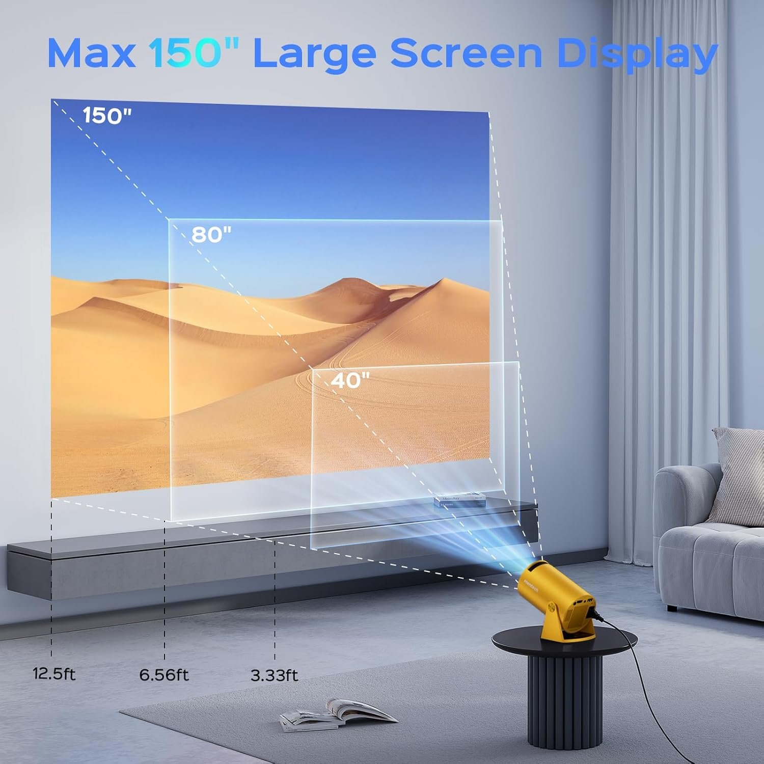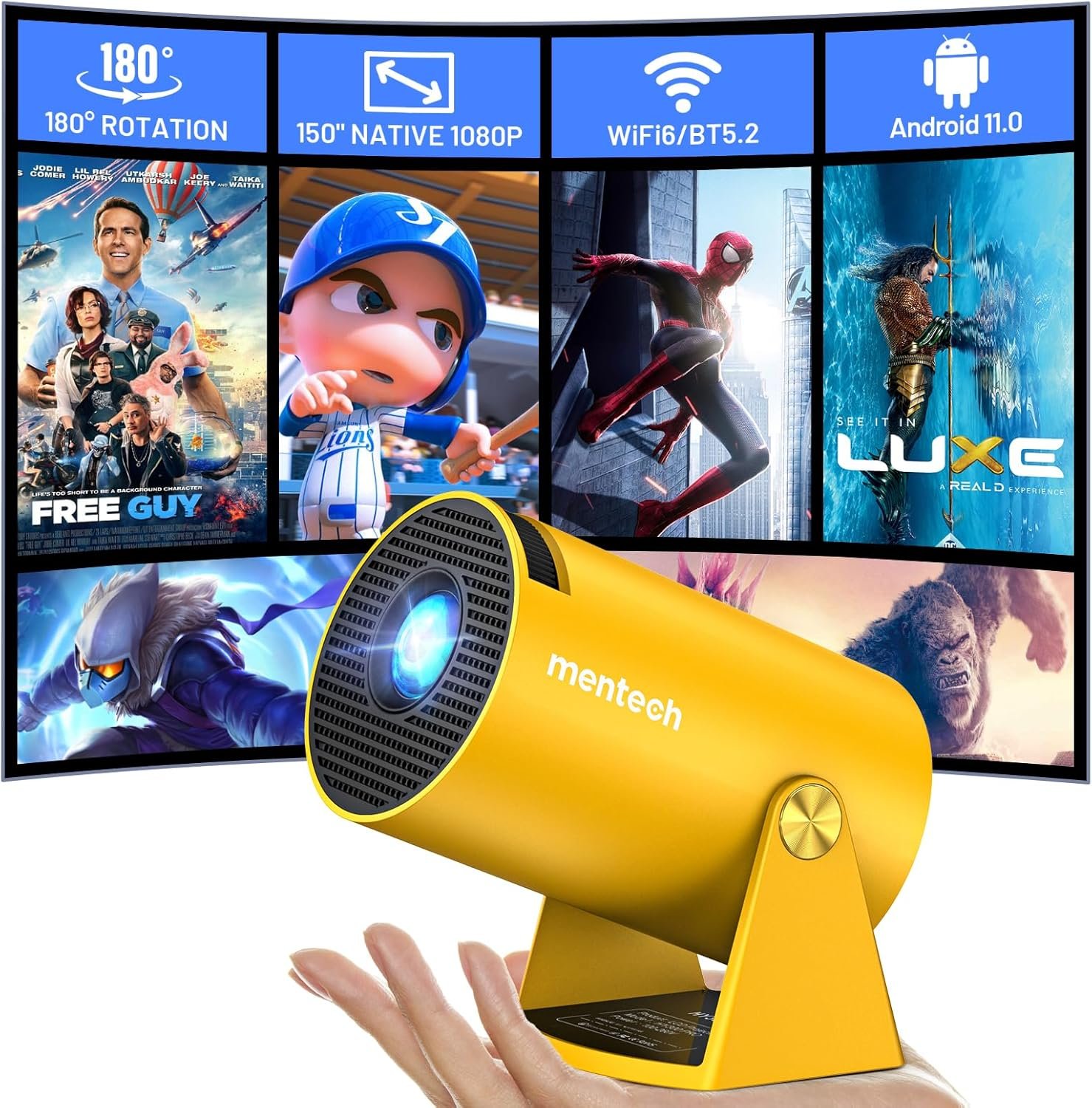 【180°Rotatable Design & 150” Giant Screen】 Experience the ultimate flexibility with the Mentech mini Projector’s 180° rotatable design, enabling projection onto any surface, including ceilings, without the need for fixed installation. Enjoy a massive 150” screen, turning any space into an immersive theater. With a long-lasting light source of up to 50,000 hours, it’s perfect for movies, gaming, and sports.