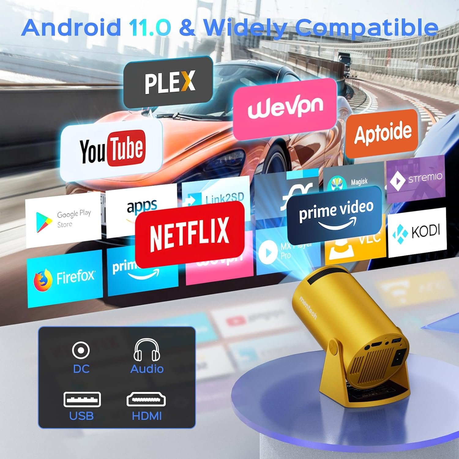 【Native 720P | Support 4K Decoding | 280ANSI Lumens | 10000:1 Contrast Ratio】The Mentech portable projector supports 4k decoding (please make sure to connect 4K devices such as TV sticks via HDMI. Videos marked as 4K projector will be displayed in the native resolution of 720P, commonly known as “Supports 4K”). With native 1280×720 resolution, 1080P support, 280 ANSI lumens 8500 lumens brightness, and a 10000:1 contrast ratio, you’ll get sharp, detailed visuals and vivid colors.