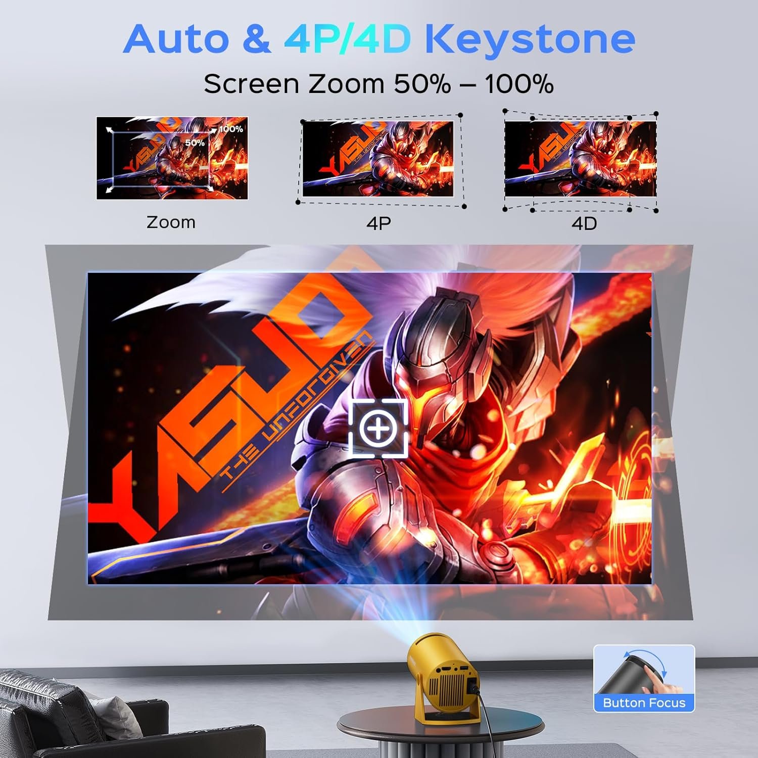 【Mini Low Noise & Built-in Speaker &BT 5.2】 Weighing just 0.99 lbs and roughly the size of a can, this portable projector is incredibly portable. The integrated speakers deliver clear audio, and Bluetooth 5.2 allows wireless connections to external speakers or headphones for a clutter-free setup and enhanced sound quality.
