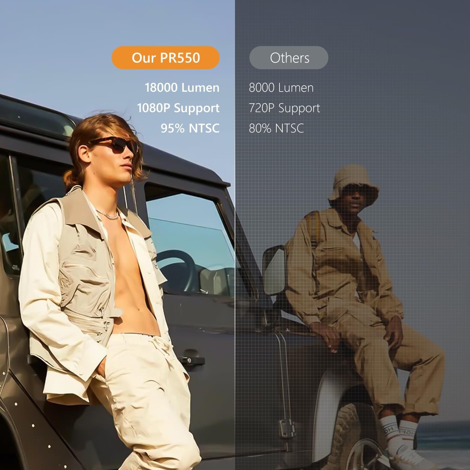 【Support 4K Native 1080P & Keystone Correction】The PR550 movie projector supports a 4K native 1080P resolution and has a 18000 lumens brightness. This excellent brightness performance means it can provide clearer and more vibrant image effects. You can enjoy a more immersive movie image. The video projector also has an automatic ±40° vertical keystone correction feature, which can easily adjust offset images, ensuring images always display the correct shape and proportion.