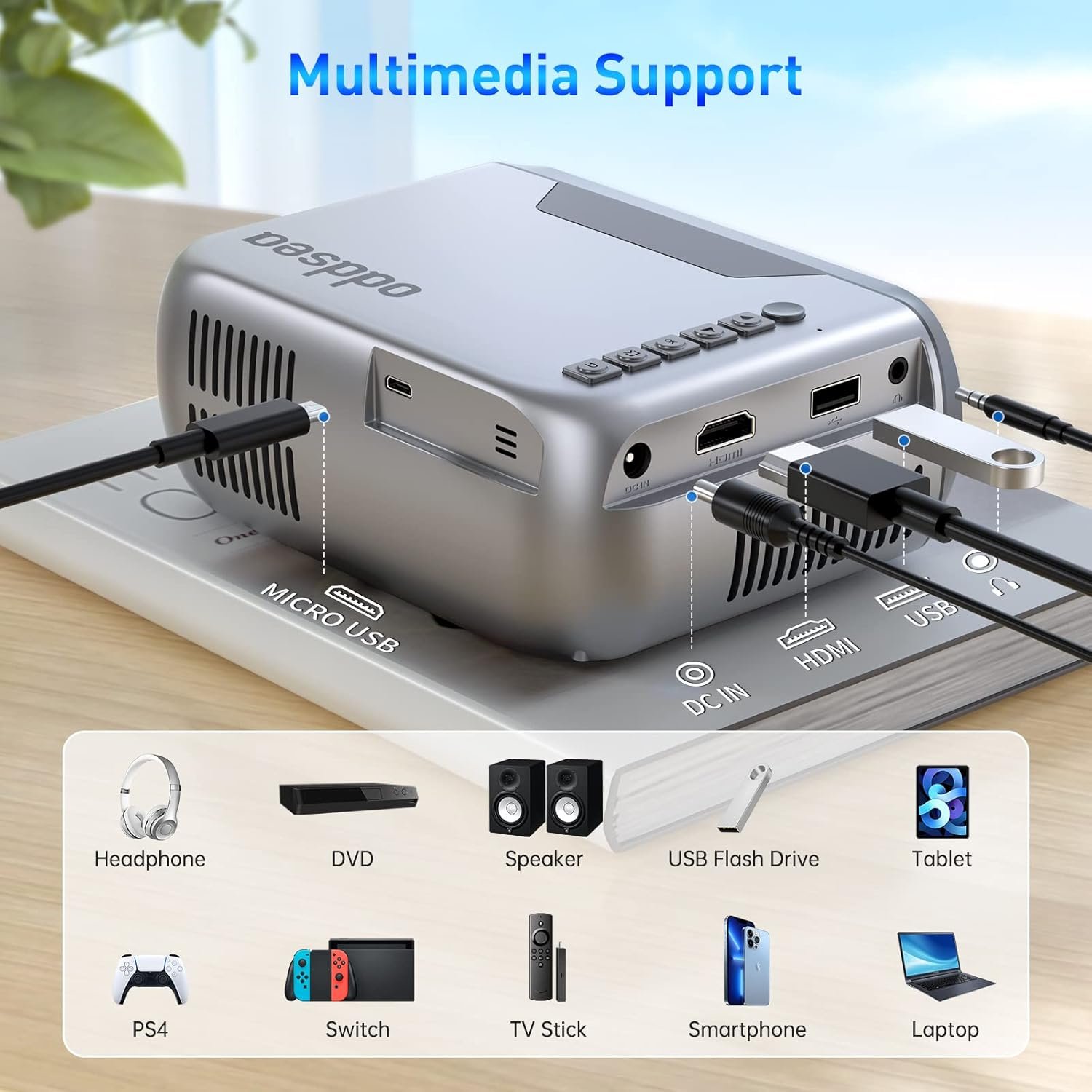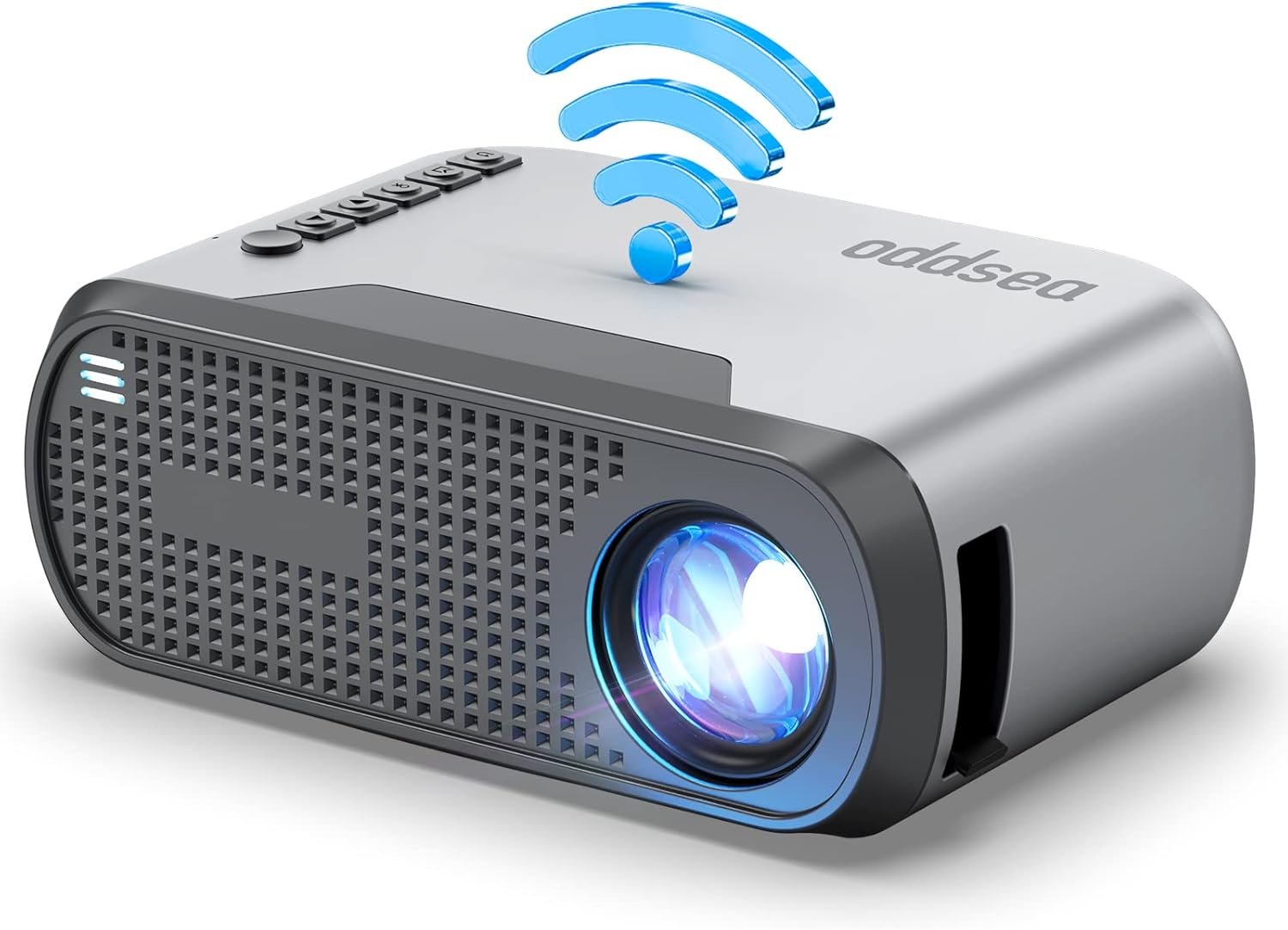 Mini Projector with WiFi, Oddsea Portable Projector for Home Theater, 1080P Supported Movie Projector for Outdoor Use, Compatible with iPhone, Android Phone, Laptop, USB, TV Stick